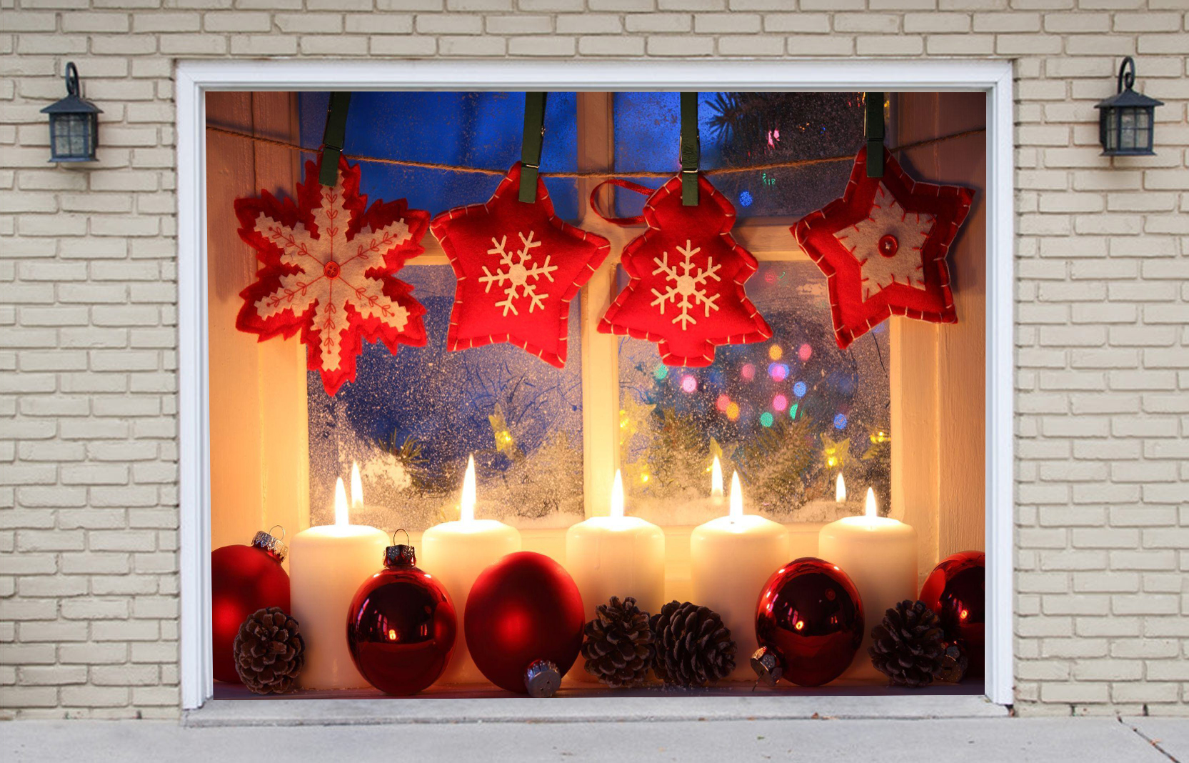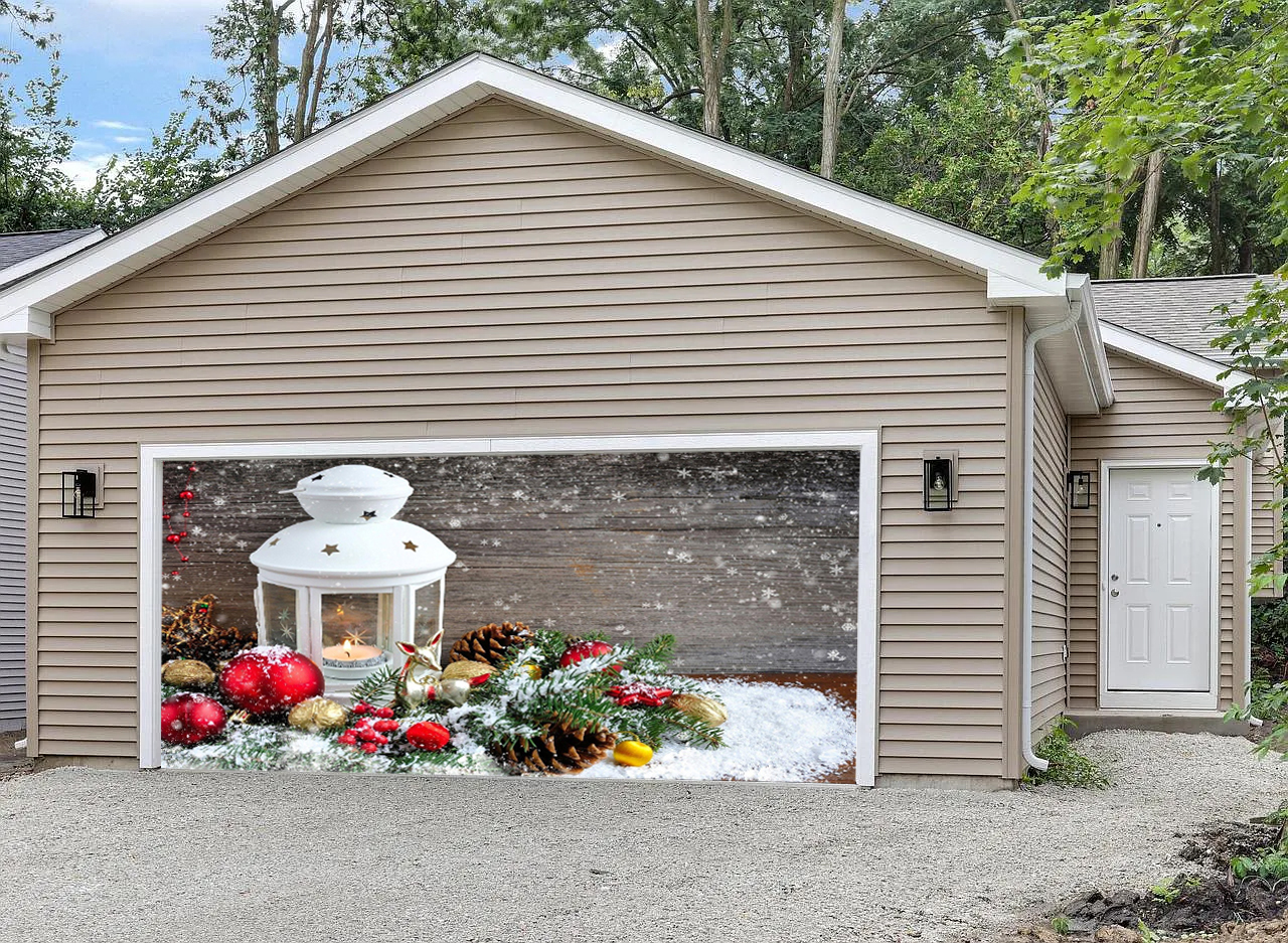 Burning Lantern Christmas Candle Winter Christmas Garage Door Banner Mural