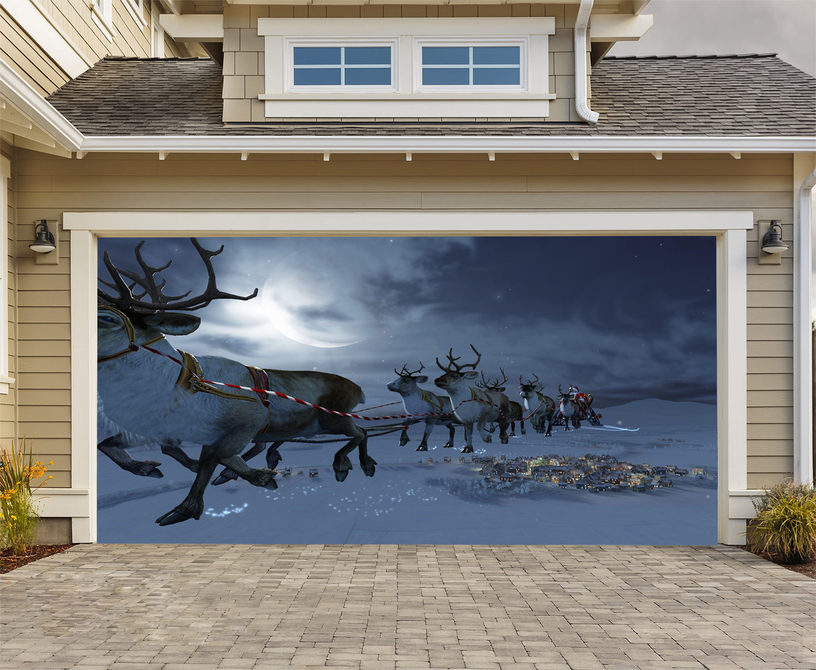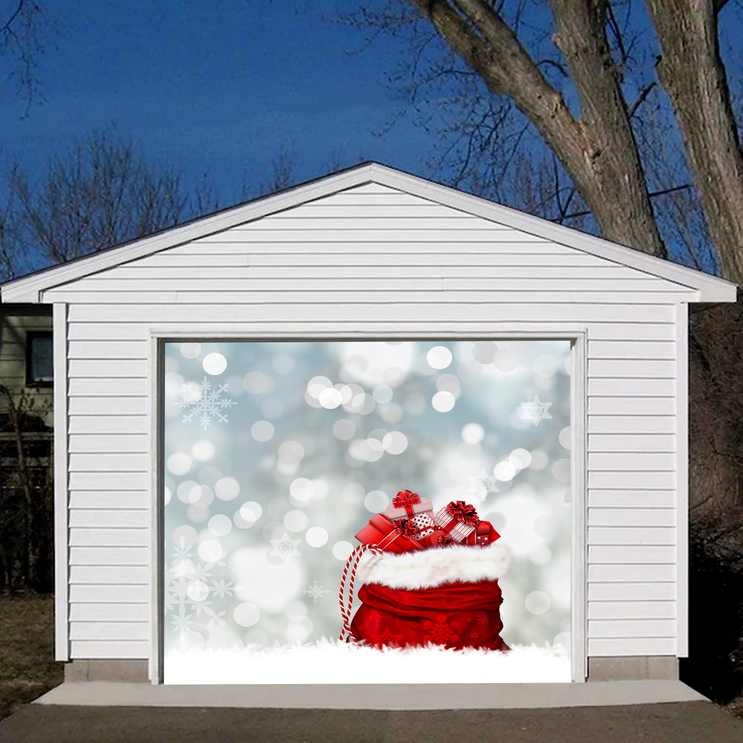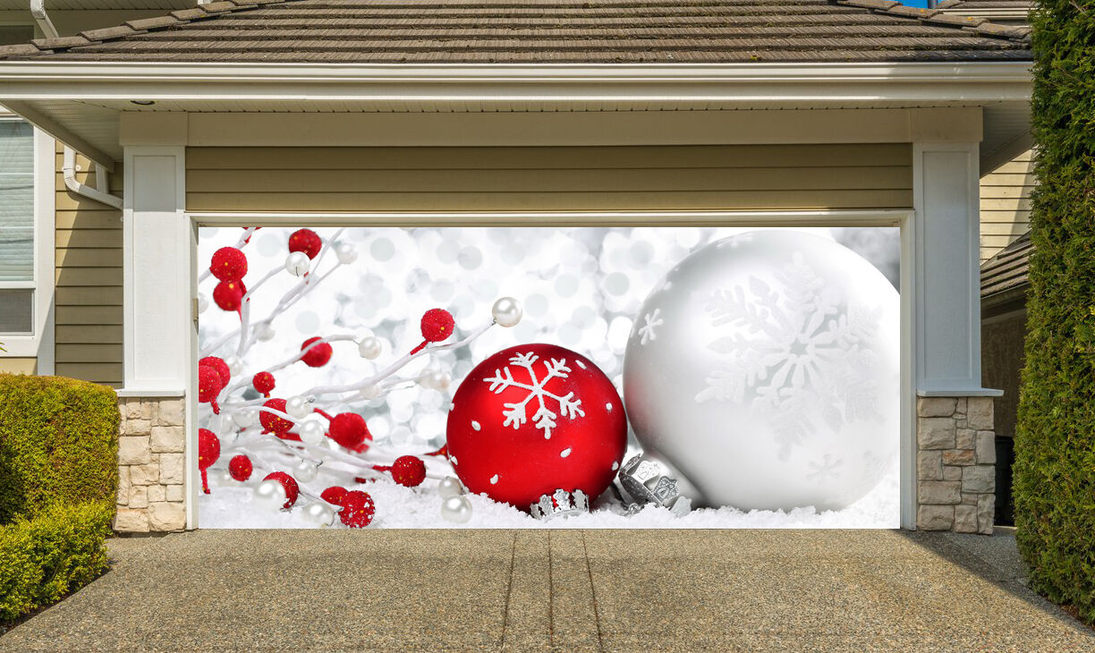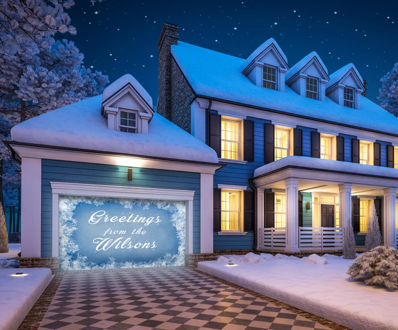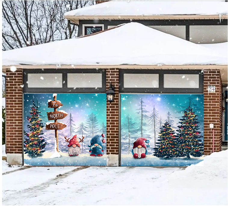 2 Size 7' H x 16' W,7' H x 8' W Reusable Christmas Garage Door Mural - Christmas Outdoor Decoration - Double Garage Door Cover - New Year Door Decor - Winter Wall Print