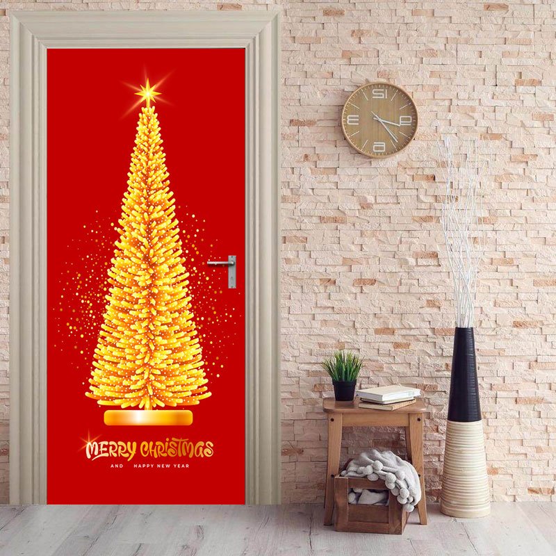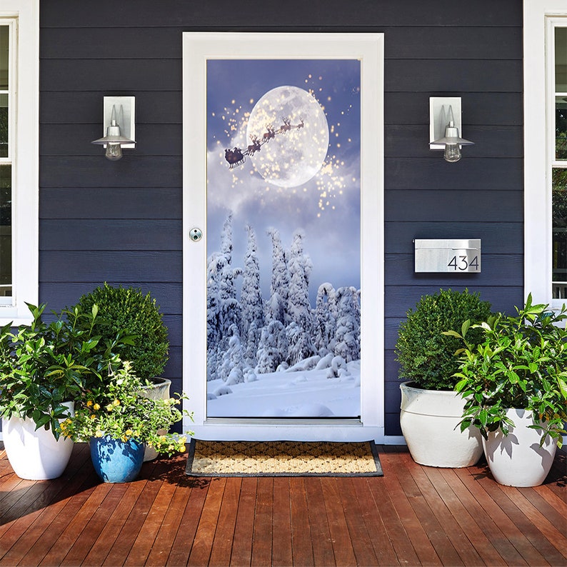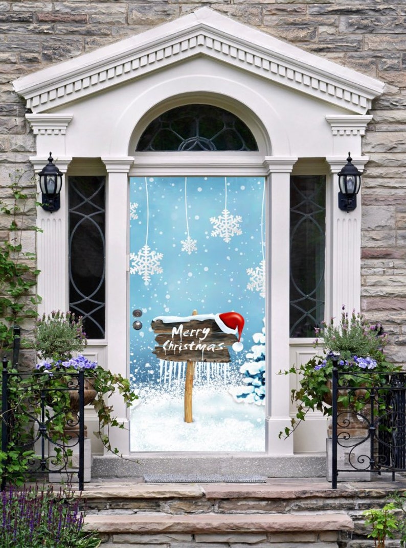Merry Christmas Front Door Cover Entry Holiday Doors 3D Banner Art Decor House Vinyl Door New Year Holiday Decoration