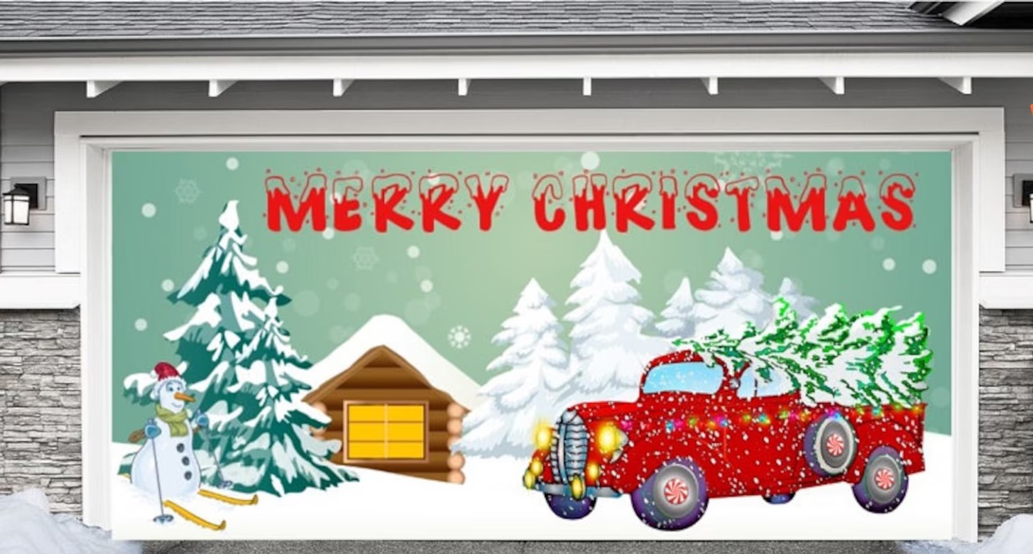 Merry Christmas garage door banner