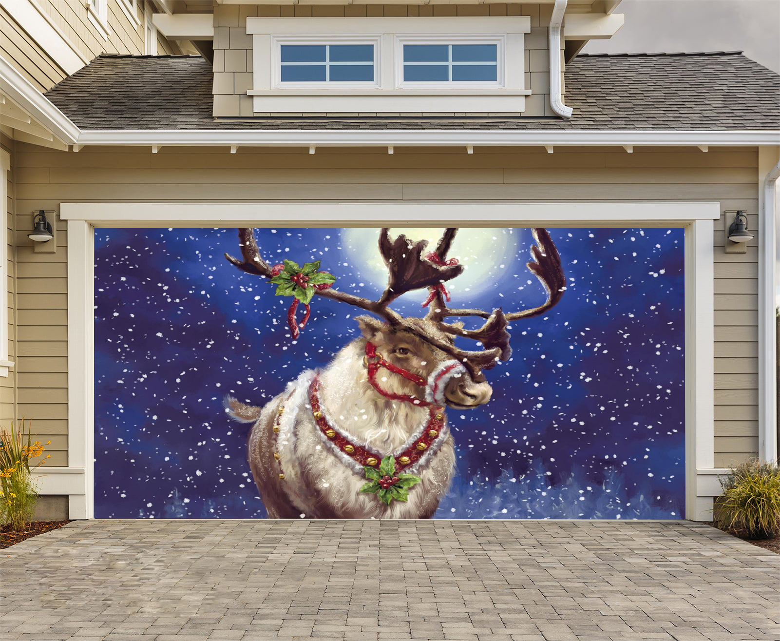 Merry Christmas Elk Garage Door Mural