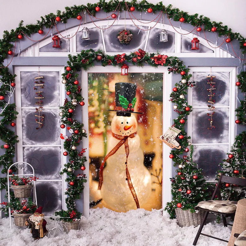 Snowman Door Decorations - Christmas Door Covers - Outdoor Christmas Decorations - Front Door Decor - Door Cover - Holiday Door Covers