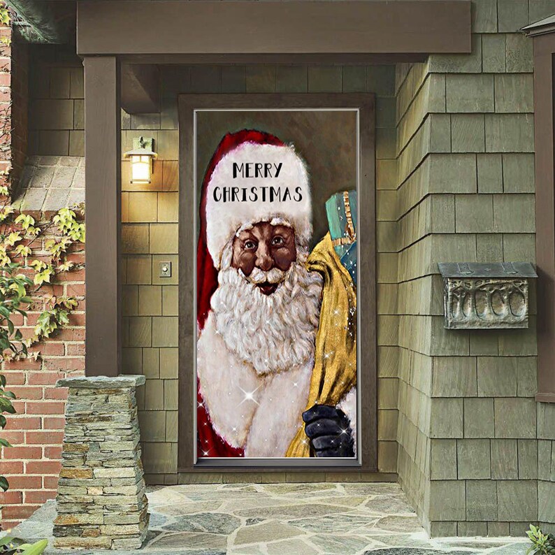 Black Santa Claus Door Cover - Christmas Door Covers - Black Santa Claus Decor - Holiday Door Covers - Black Santa Claus Decoration
