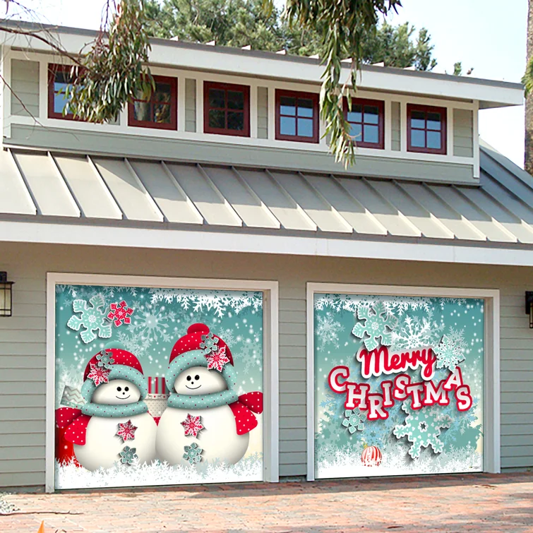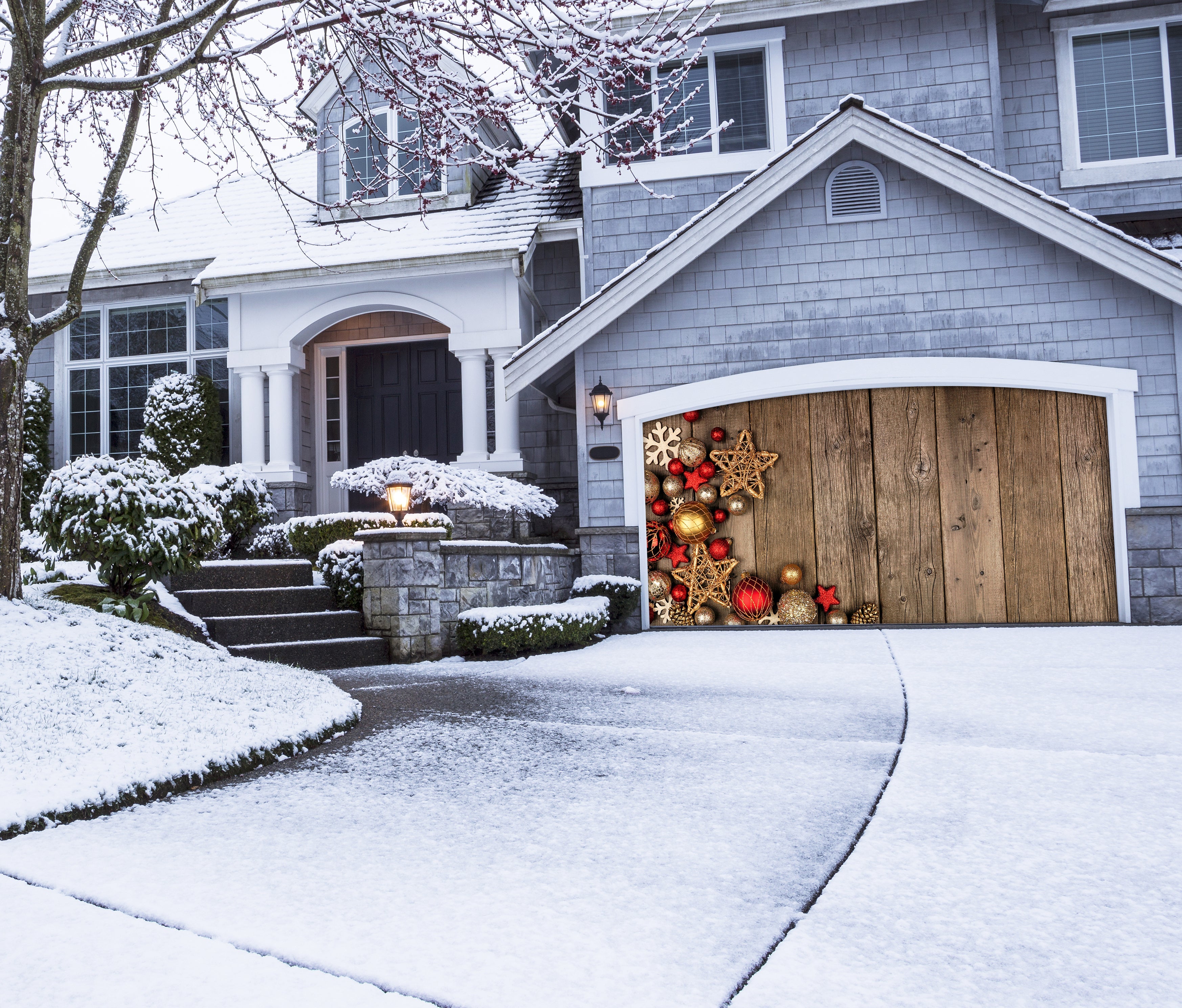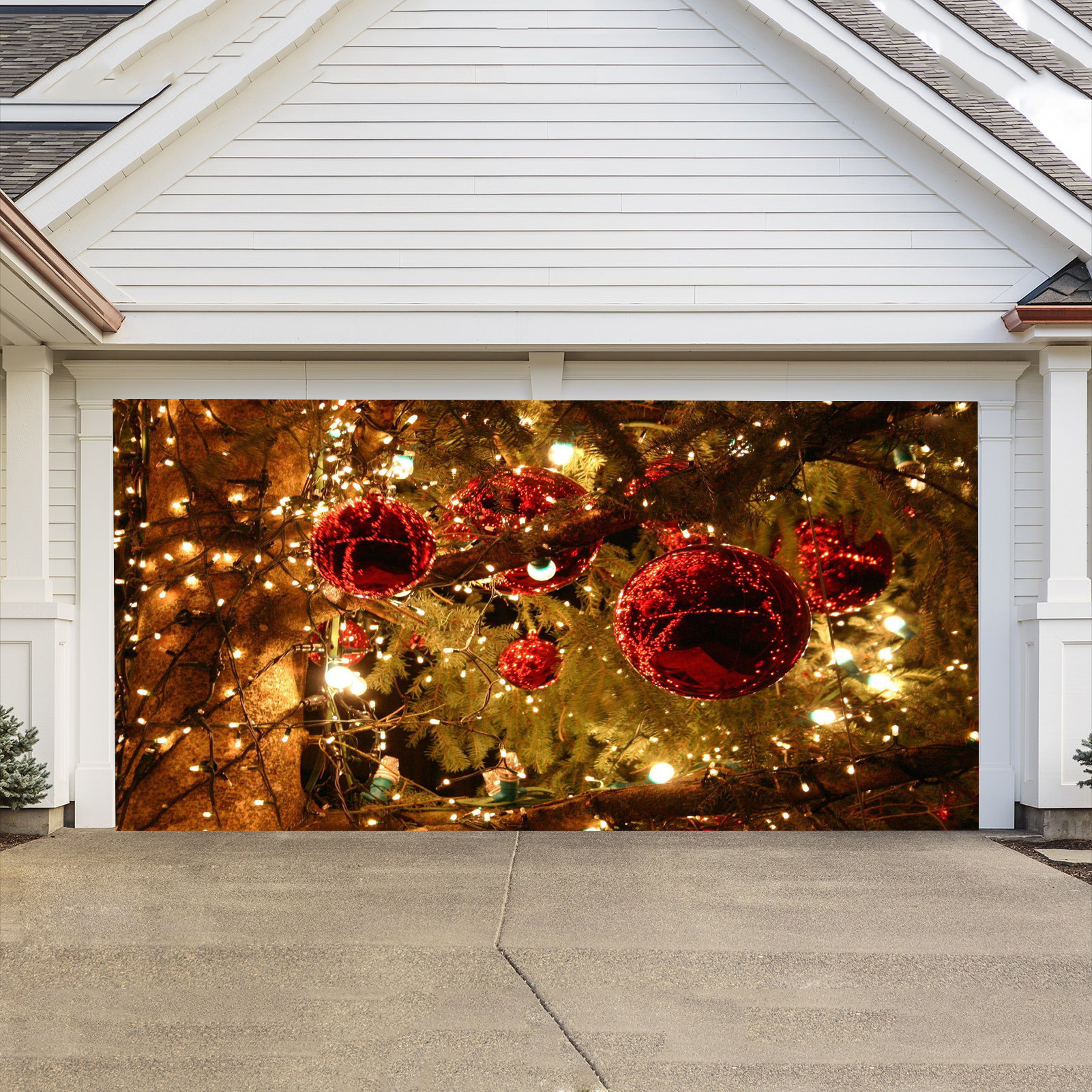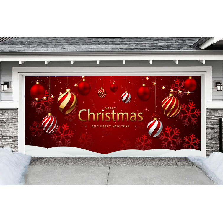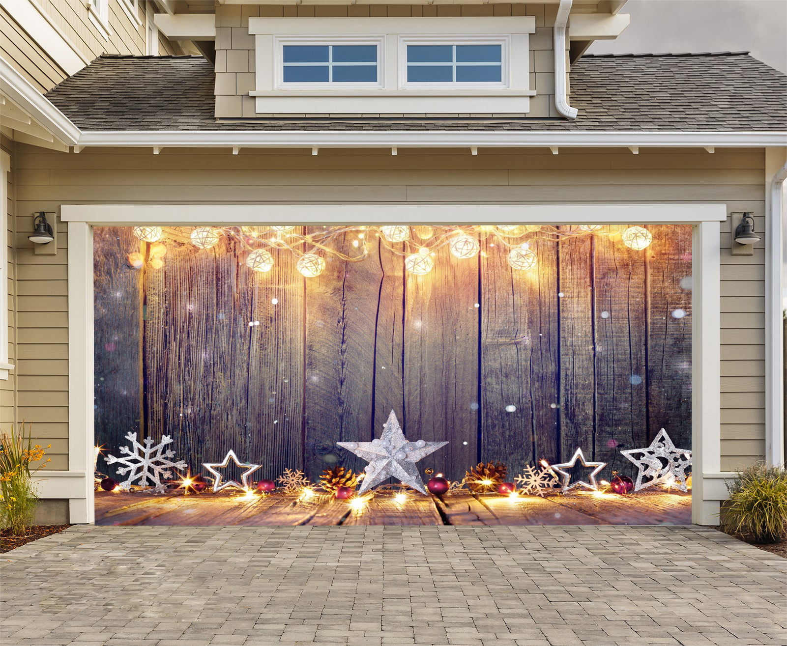 Silver Christmas Ornaments on Blue Christmas Garage Door Decor Mural for Double Car Garage