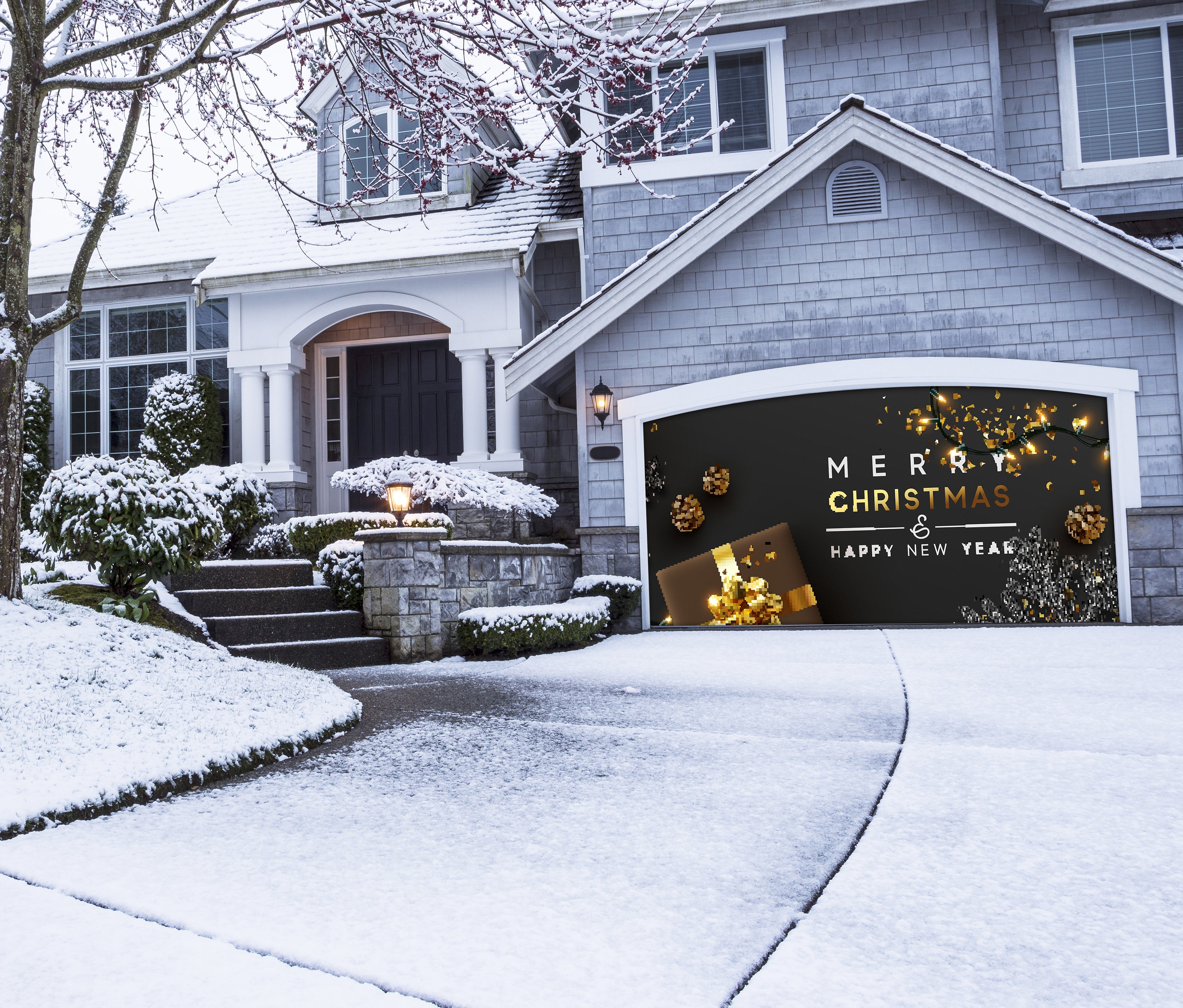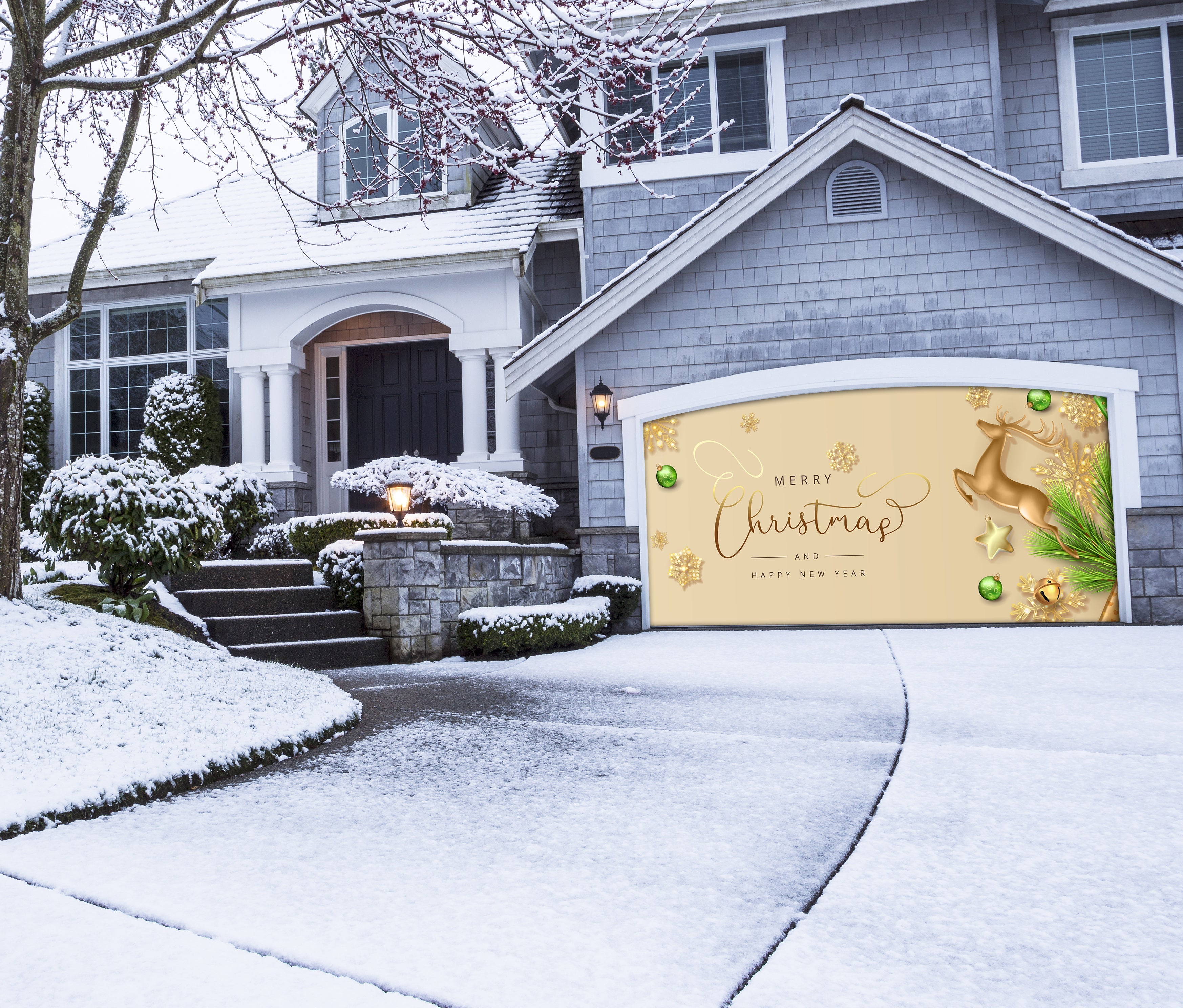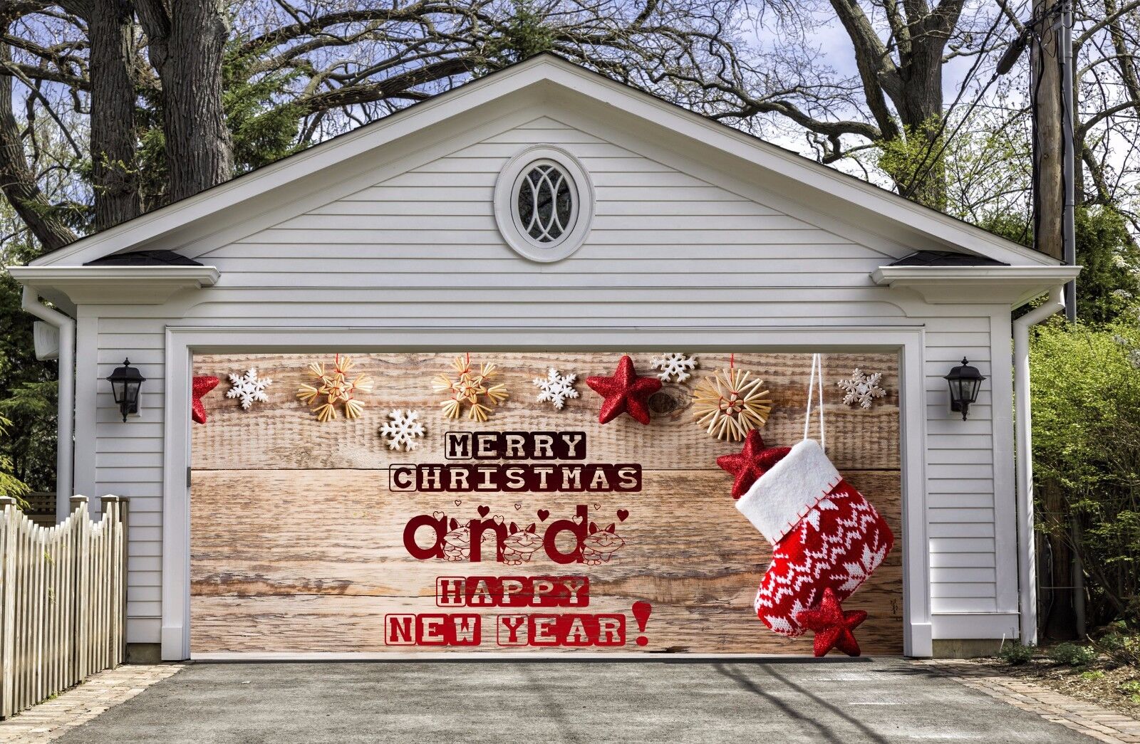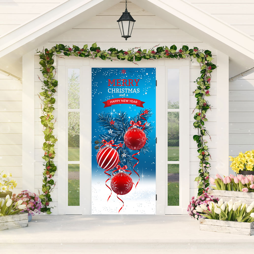 Merry Christmas and Happy New Year Door Decoration - Christmas Door Cover - Outdoor Christmas Decoration - Simple Christmas Front Door Decor