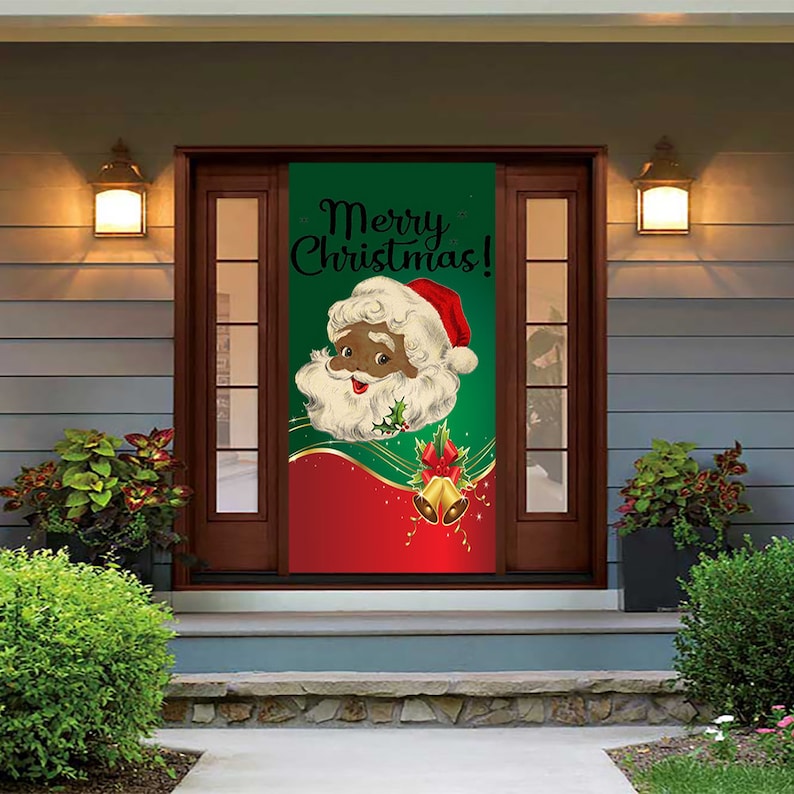 Black Santa Door Cover - Christmas Door Covers - Black Santa Claus Decor - Holiday Door Covers - Black Santa Claus Decoration