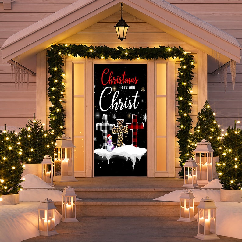 Begin with Christ Door Cover - Christmas Door Cover - Outdoor Christmas Decorations - Front Door Decor - Door Cover - Christmas Door Decor