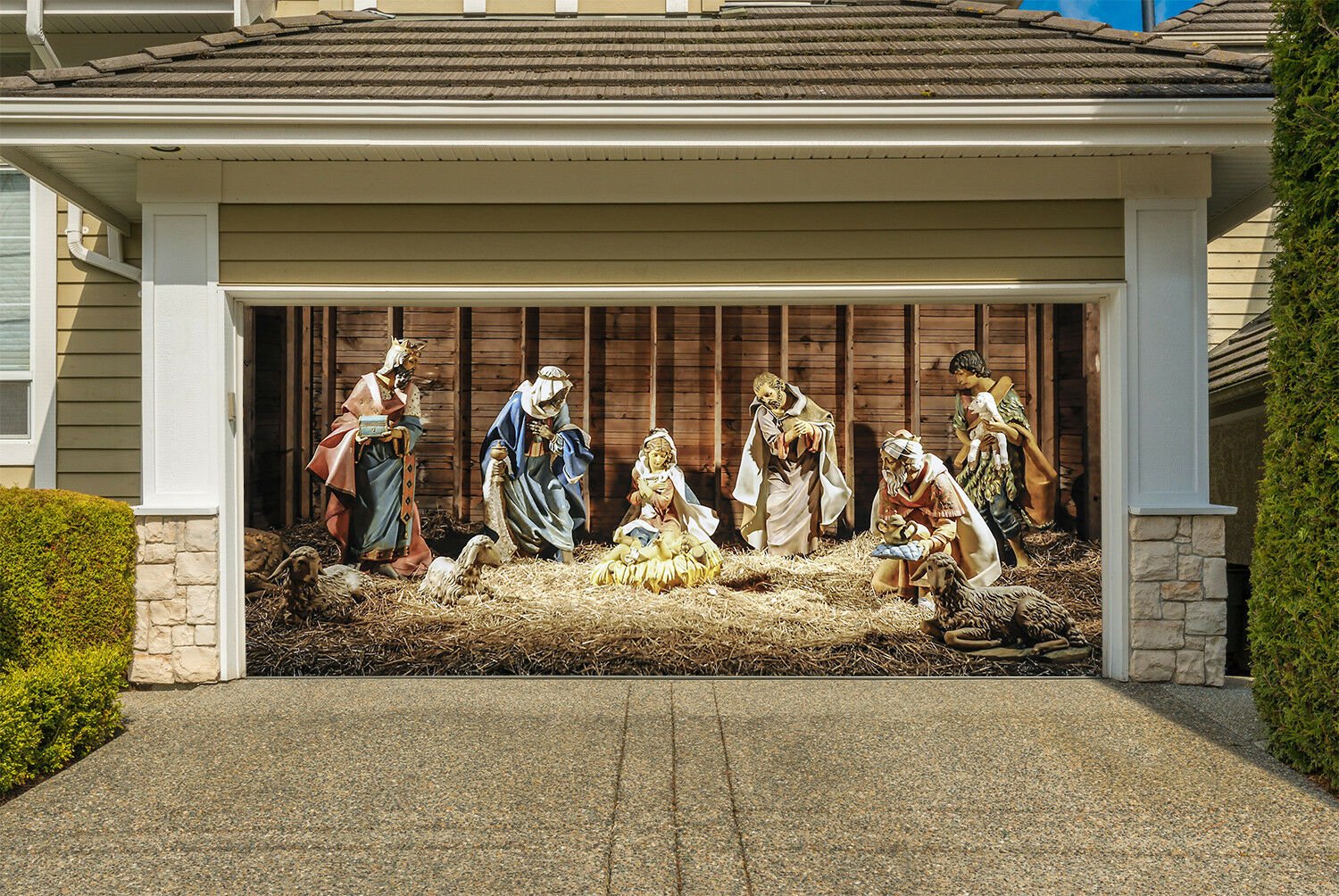 Nativity Scene Garage Door Banner, Christmas Mural for Double Garage Door