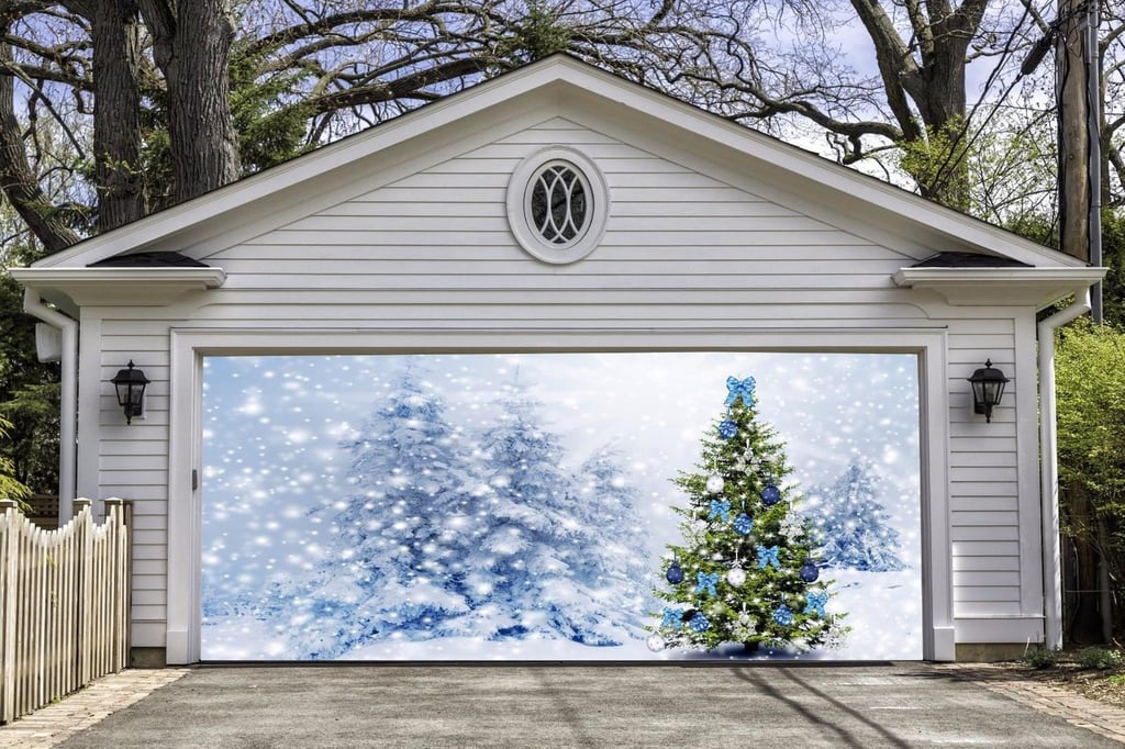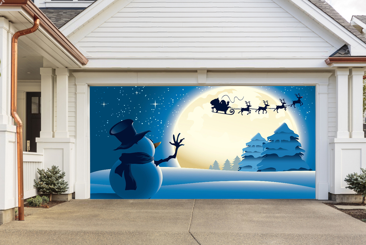 Gnome Garage Door Mural snow scene Christmas-Outdoor Christmas Holiday Garage Door Banner Decor Christmas Scene Garage Door Mural