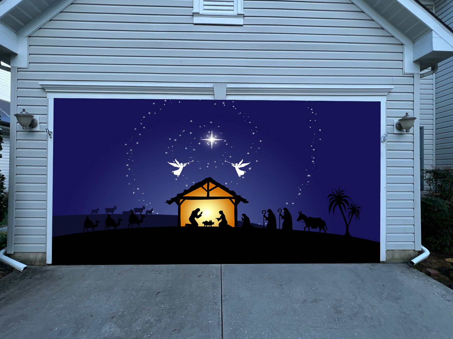 Nativity Scene O' Holy Night-Christmas Garage Door Decor Mural for Double Car Garage
