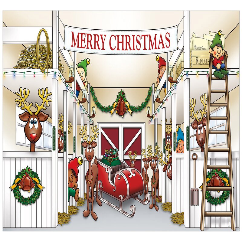 Santa's Reindeer Barn without Santa Garage Door Mural-8'HX9'W