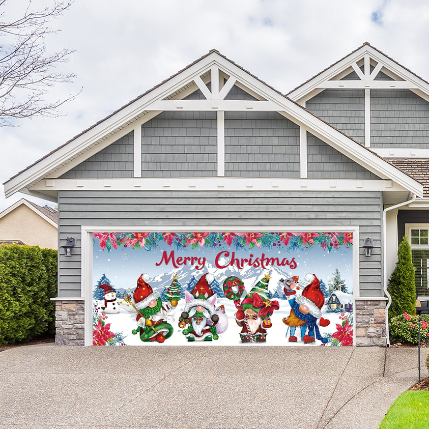 “Merry Christmas”Gnome Garage Door Mural snow scene Christmas-Outdoor Christmas Holiday Garage Door Banner Decor Christmas Scene Garage Door Mural