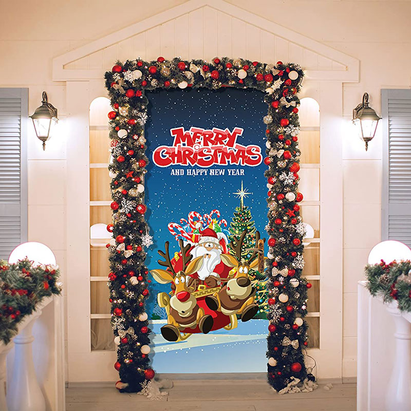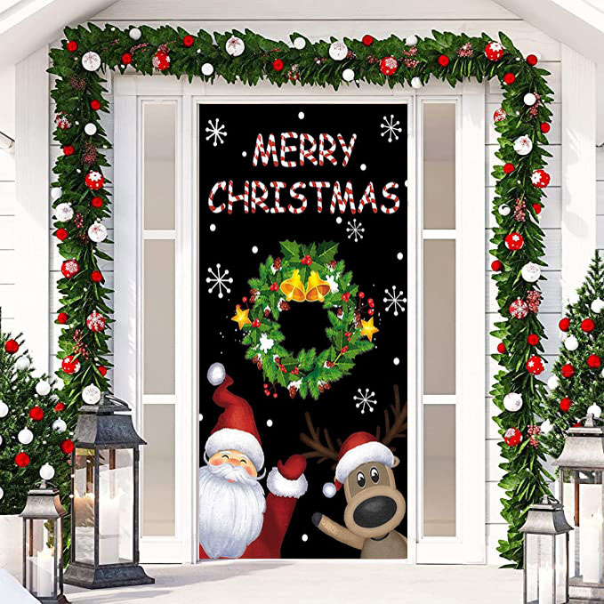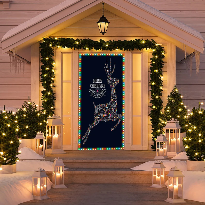 Reindeer Christmas Door Cover - Christmas Door Cover - Outdoor Christmas Decorations - Front Door Decor