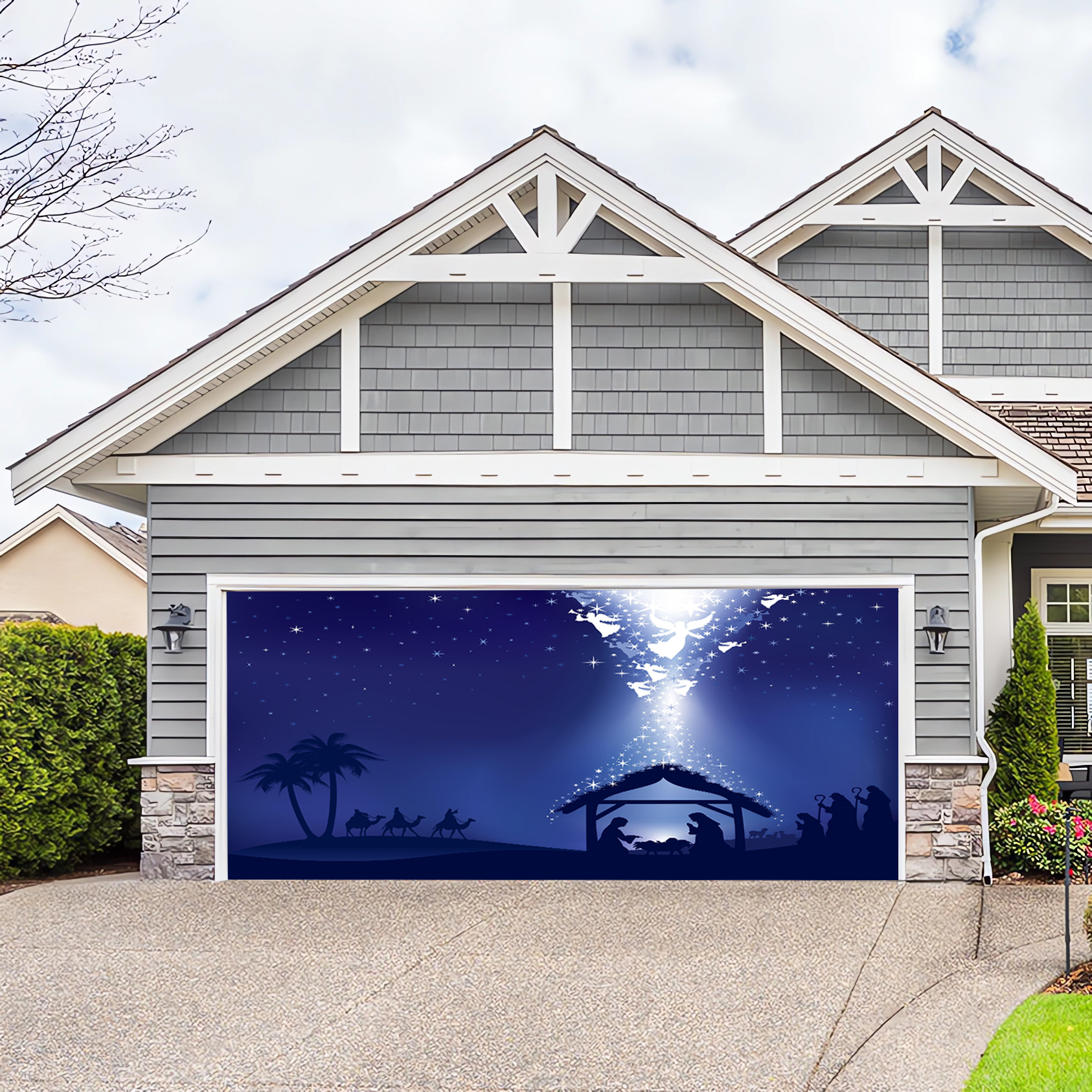 7 ft. x 16 ft. Nativity Scene O' Holy Night-Christmas Garage Door Decor Mural for Double Car Garage