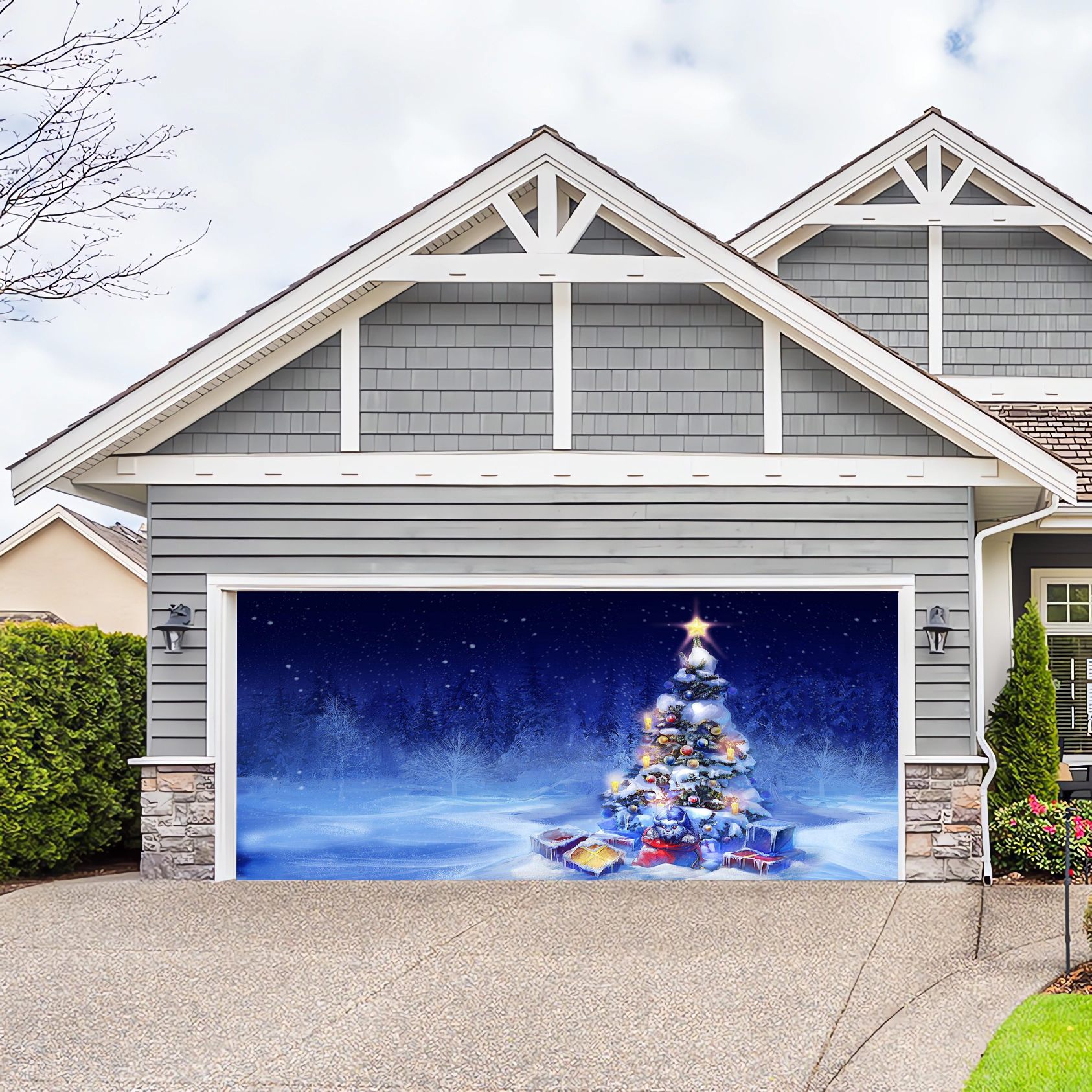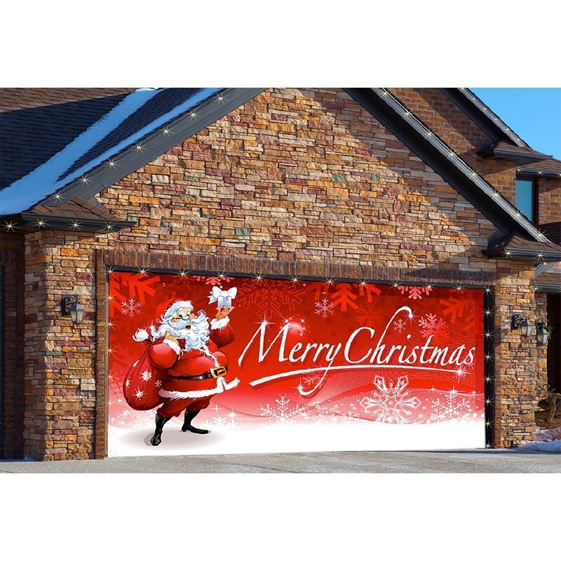 7 ft. x 16 ft. Santa's Sleigh Ride-Christmas Garage Door Decor Mural for Double Car Garage