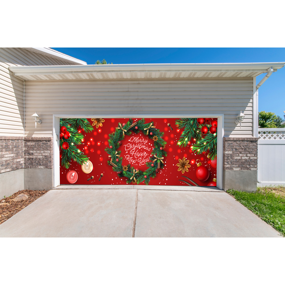 7 ft. x 16 ft. Huge Santa's Reindeer Barn Christmas Garage Door Decor Mural for Double Car Garage