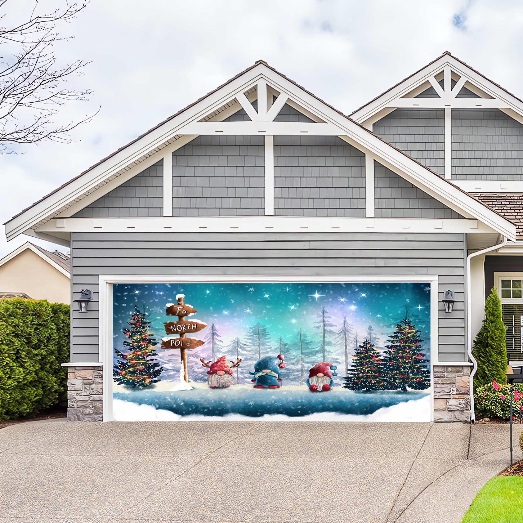 Christmas Gnome Garage Door Mural Winter Snow Scene Garage Door Mural