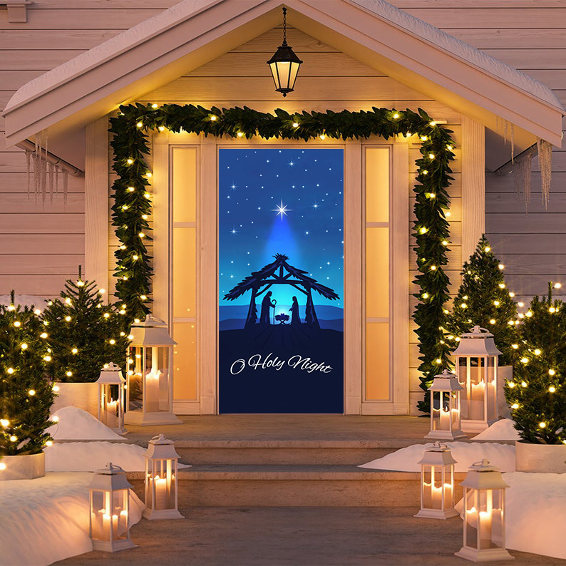 Nativity Christmas Night Door Set Banner Decoration, Nativity Scene, Holiday Christmas