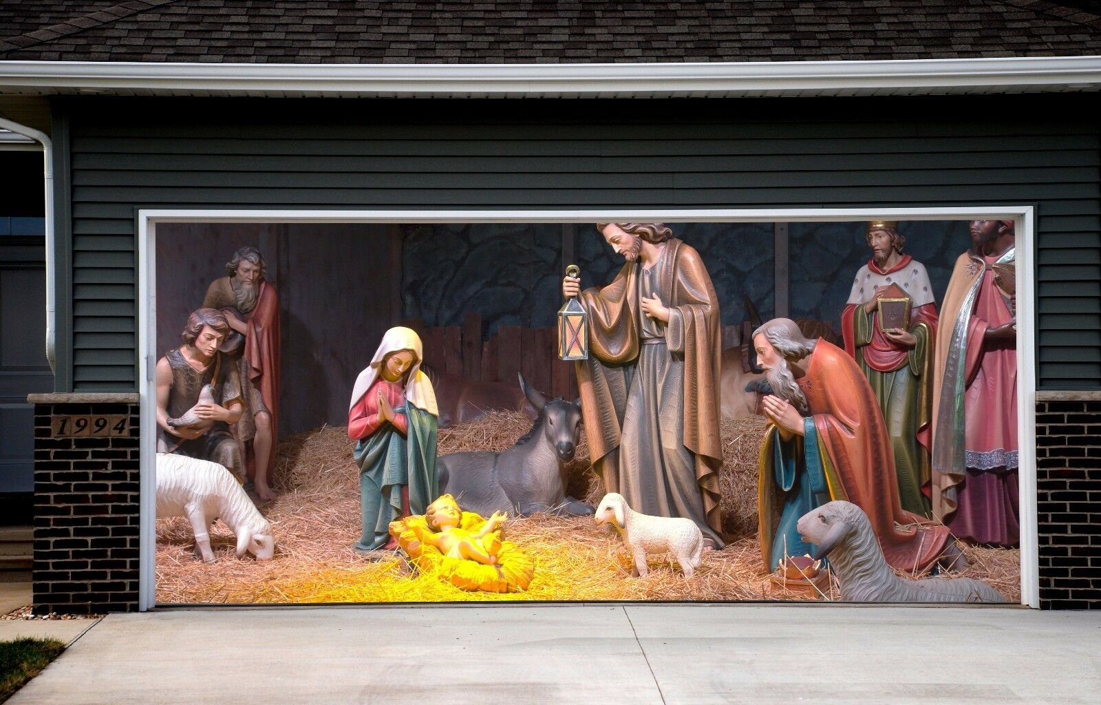 Nativity Scene Garage Door Banner, Christmas Mural for Double Garage Door