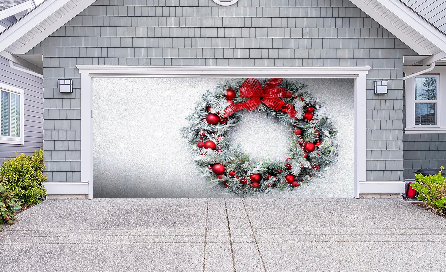 Red Truck Christmas-Christmas Garage Door Decor Mural for Single Car Garage
