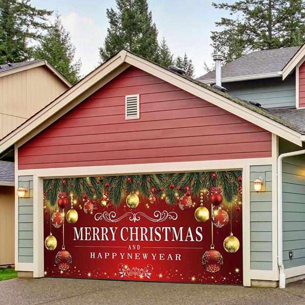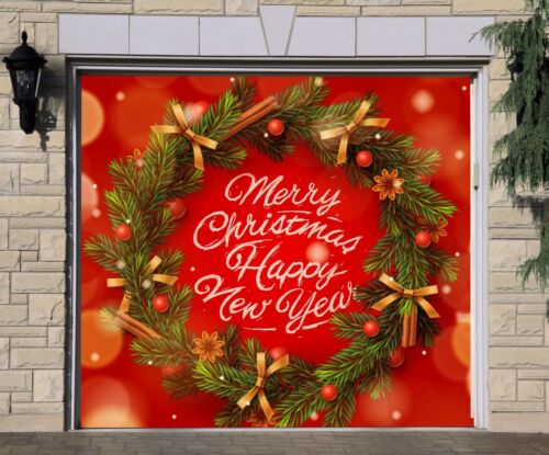 Merry Christmas Sign Single Garage Door Cover Full Color Christmas Mural