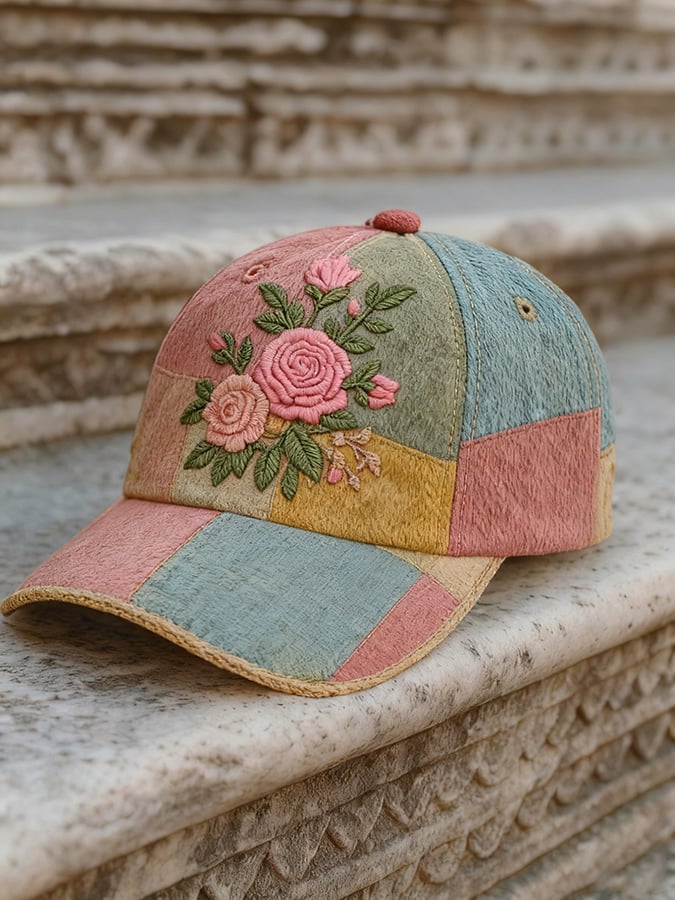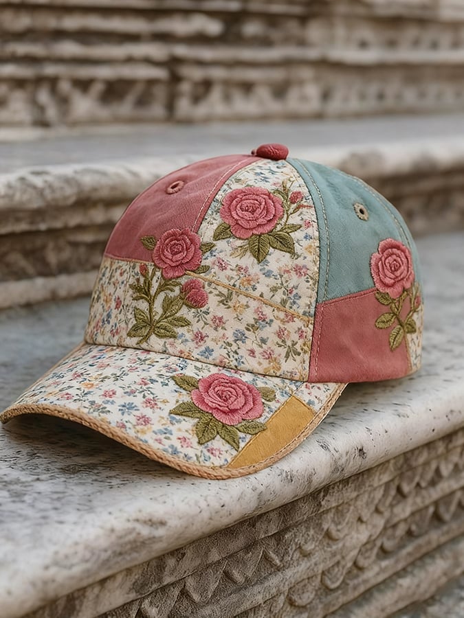 Women's Casual Pink Retro Color Matching Floral Print Hat