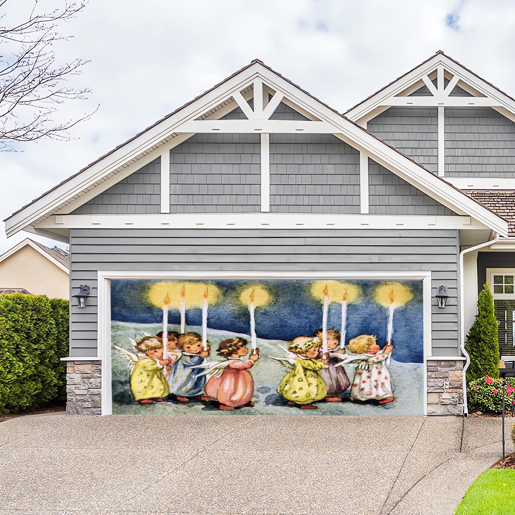Cute Little Angel Christmas Garage Decor Billboard Door Mural