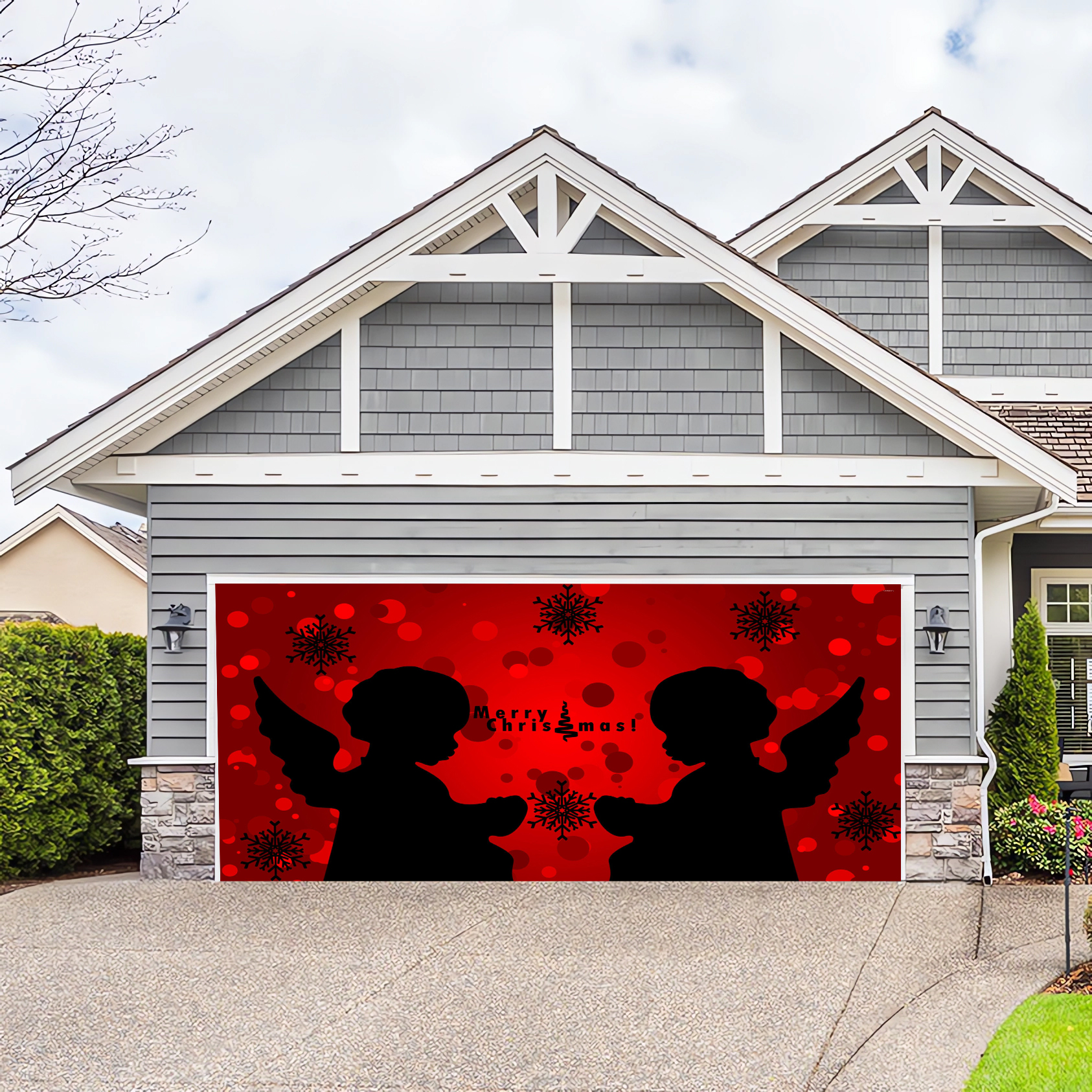 Cute Little Angel Christmas Garage Decor Billboard Door Mural