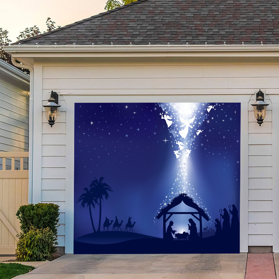 Nativity Scene O' Holy Night-Christmas Garage Door Decor Mural for Double Car Garage