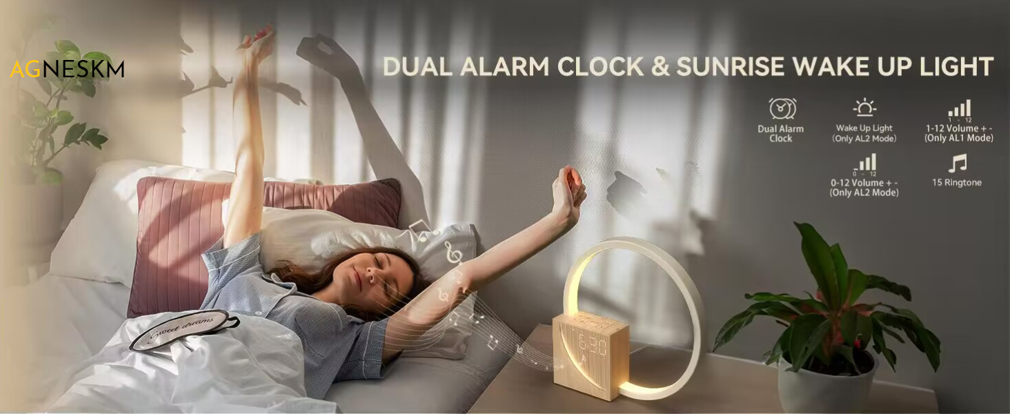 - 【Rise and Shine with Our wake-up light Alarm Clock】Our alarm clock also have a wake-up light function, the perfect solution for a peaceful morning routine. Experience the gradual illumination of sunlight in your room, starting 10 minutes before your alarm sounds, and reaching its brightest at wake-up time. Say goodbye to harsh alarms and wake up gently to a simulated sunrise. Discover the wonders of our sunlight alarm clocks. In addition, the alarm clock also features a USB charging station.