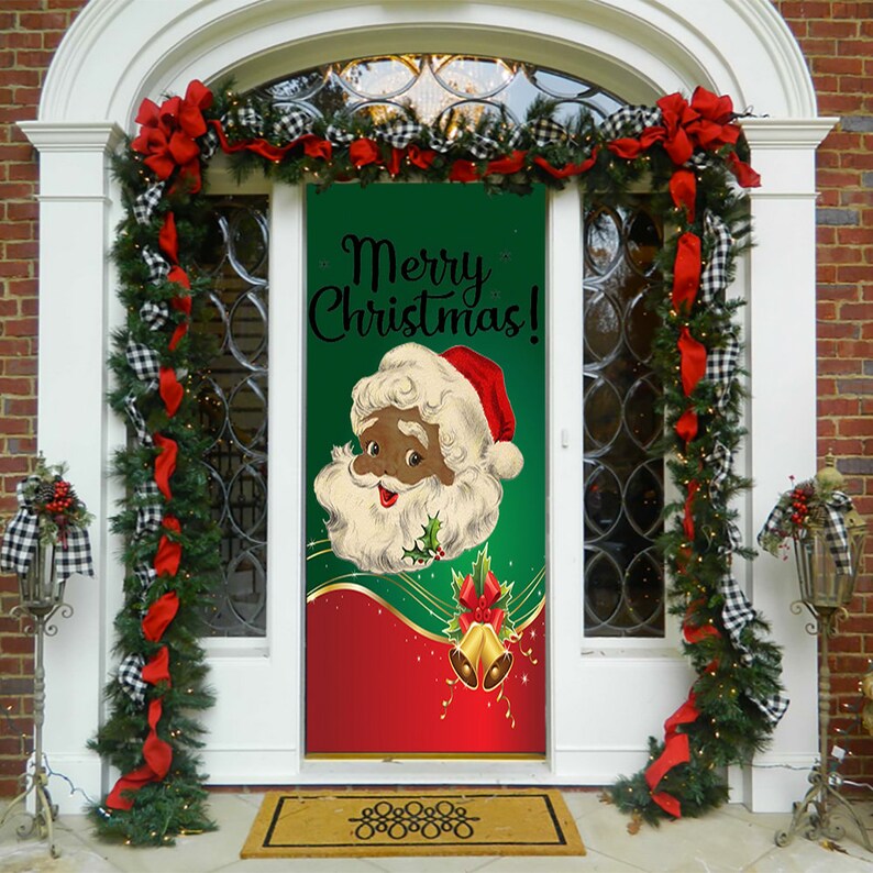 Black Santa Door Cover - Christmas Door Covers - Black Santa Claus Decor - Holiday Door Covers - Black Santa Claus Decoration