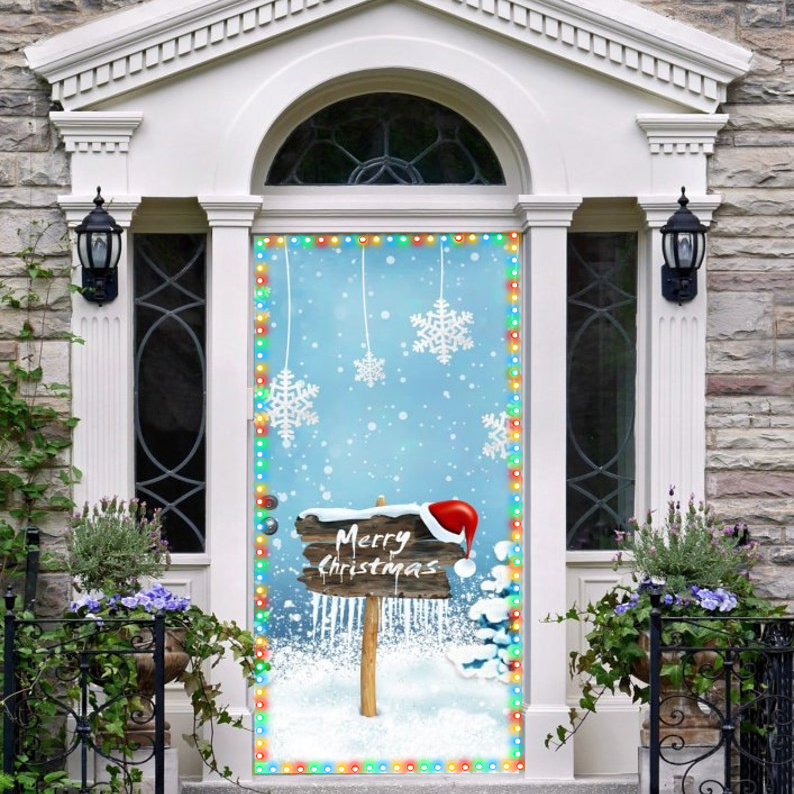 Merry Christmas Front Door Cover Entry Holiday Doors 3D Banner Art Decor House Vinyl Door New Year Holiday Decoration
