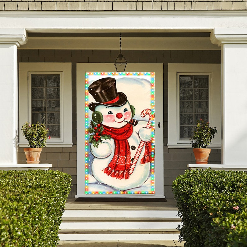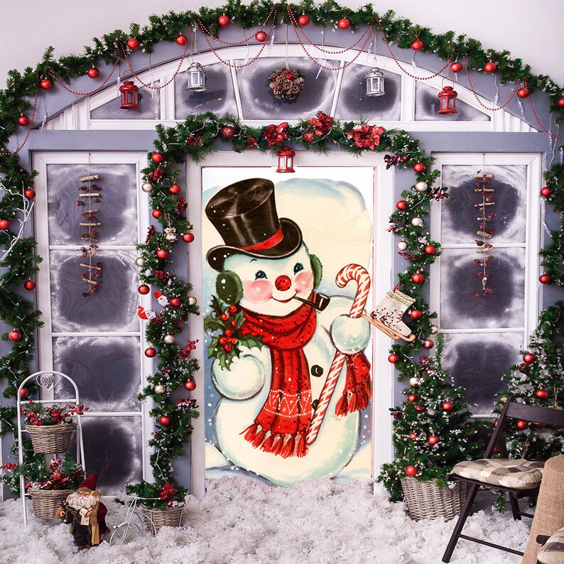 Old Fashioned Snowman Door Cover - Christmas Door Covers - Snowman Decorations - Front Door Decor - Holiday Door Covers