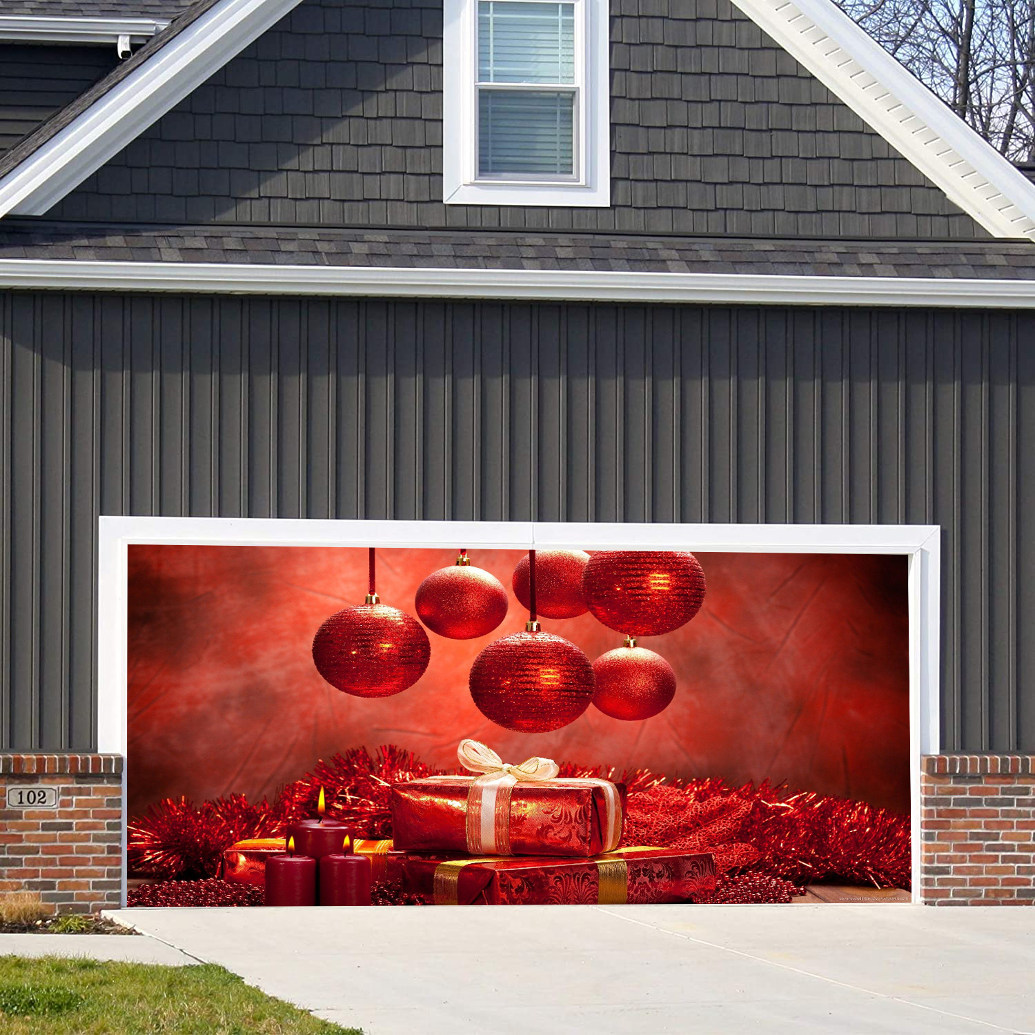 Looks like real ! Made out of top quality material and high resolution dye-sublimation printing. Festivemural selling unique garage door covers for the all year and seasons its made of high quality 100% polyester weather resistant and can be used for sectional panels and one piece tilt-up garage doors, if you’re garage door have dent , rusty or you just like to change the front of Your front house this is the great solution for your home.