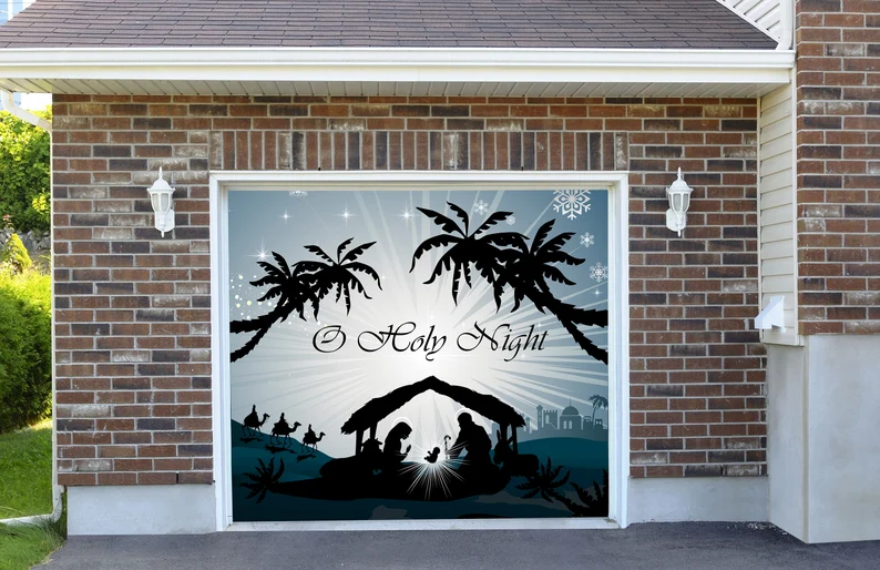 2 Size 7' H x 16' W,7' H x 8' WOutdoor Decoration Nativity Scene Garage Door Christmas O Holy Night Outside House Banner Billboard