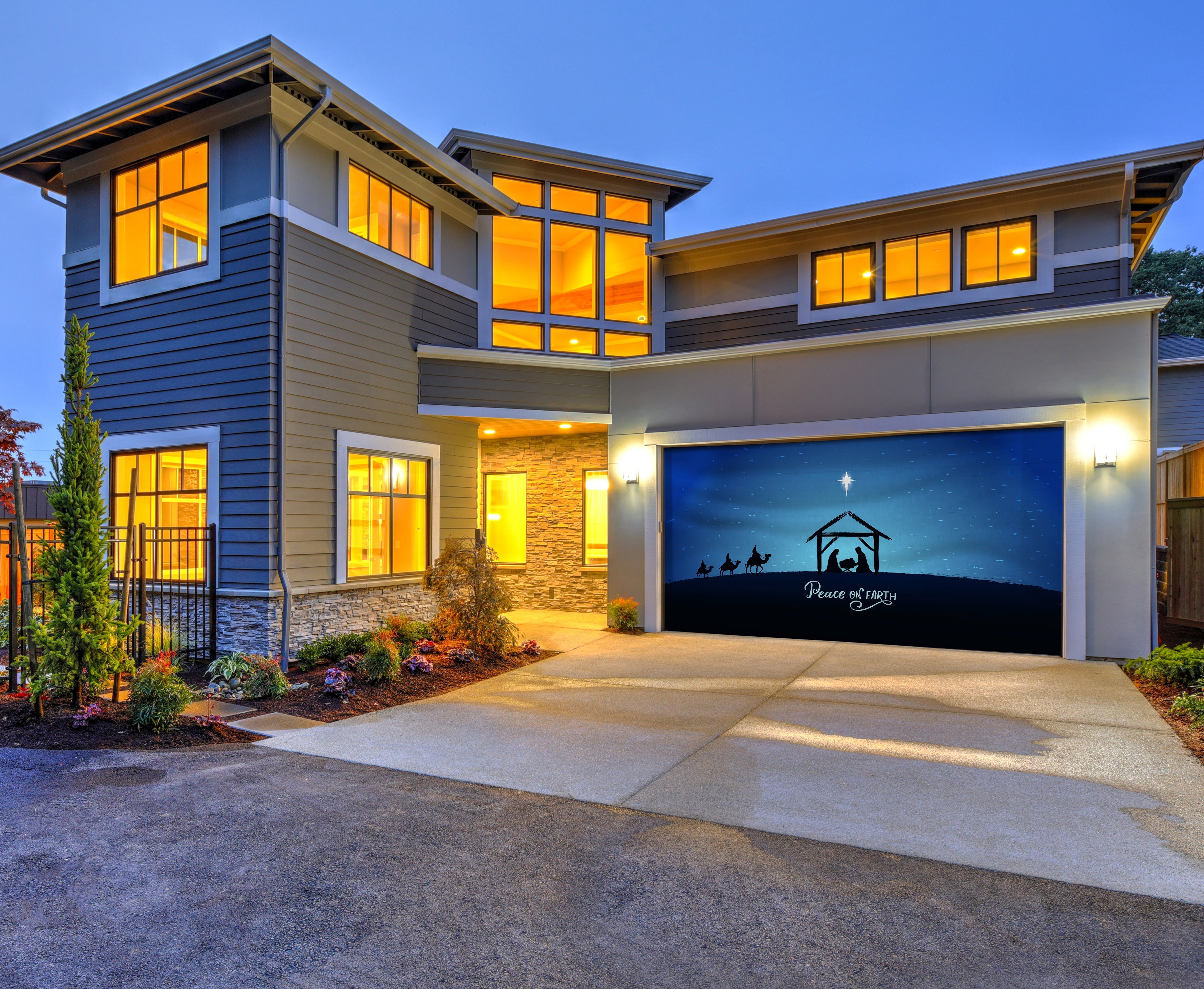 Looks like real ! Made out of top quality material and high resolution dye-sublimation printing. Festivemural selling unique garage door covers for the all year and seasons its made of high quality 100% polyester weather resistant and can be used for sectional panels and one piece tilt-up garage doors, if you’re garage door have dent , rusty or you just like to change the front of Your front house this is the great solution for your home.