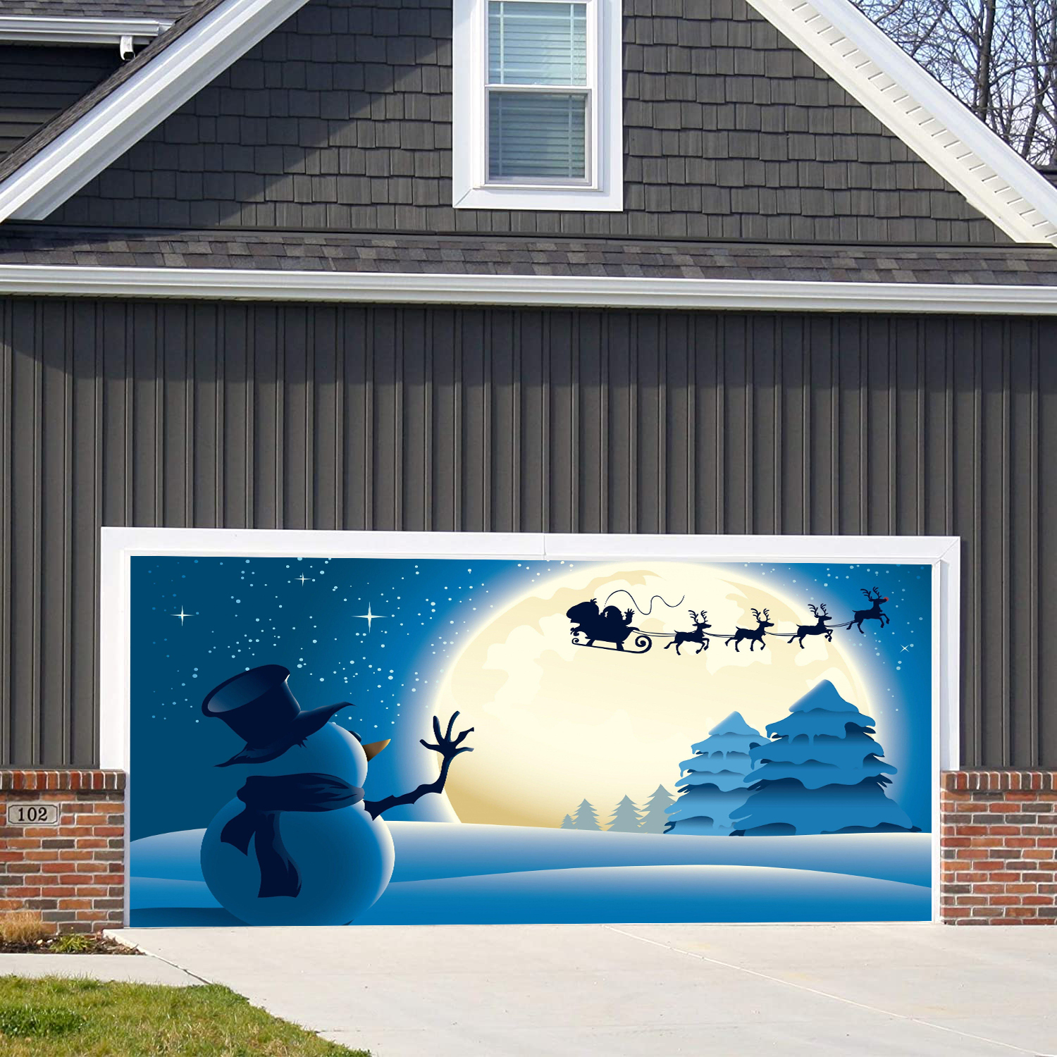 Looks like real ! Made out of top quality material and high resolution dye-sublimation printing. Festivemural selling unique garage door covers for the all year and seasons its made of high quality 100% polyester weather resistant and can be used for sectional panels and one piece tilt-up garage doors, if you’re garage door have dent , rusty or you just like to change the front of Your front house this is the great solution for your home.