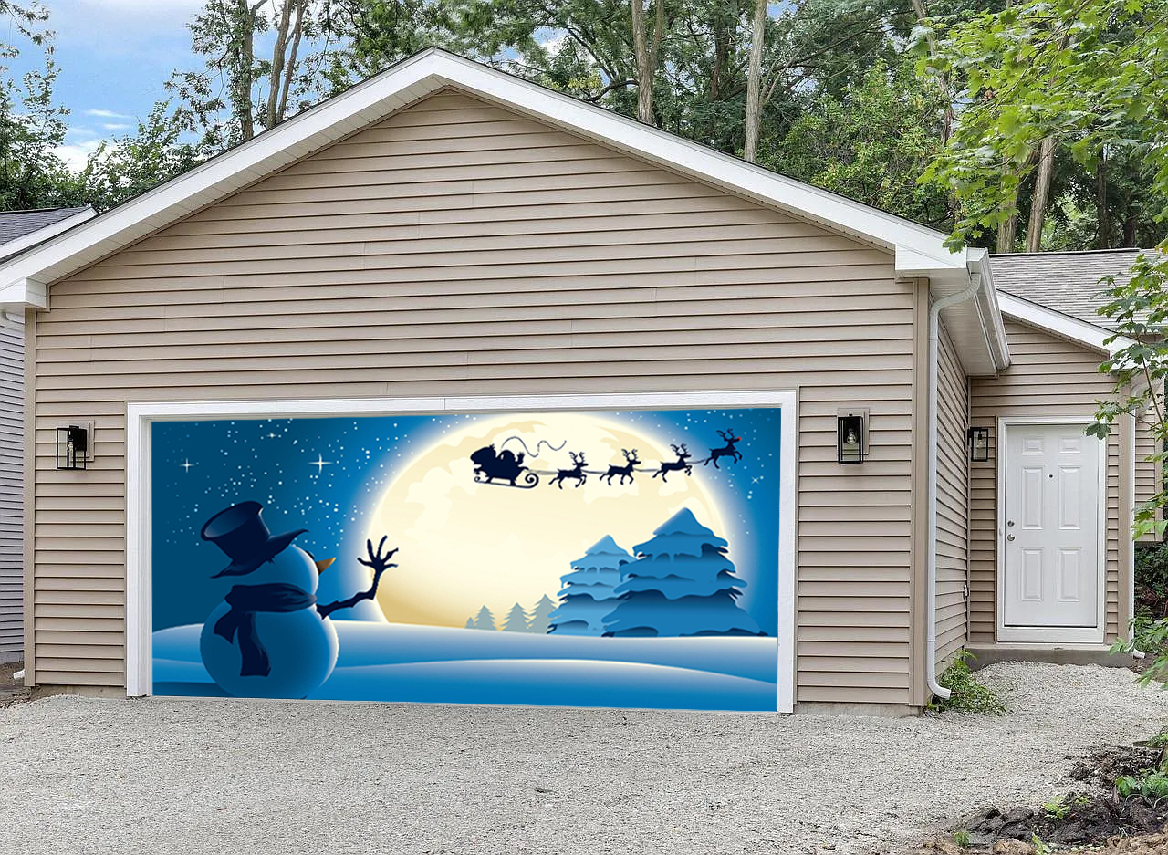 Snowman Merry Christmas-Outdoor Christmas Holiday Garage Door Banner Decor