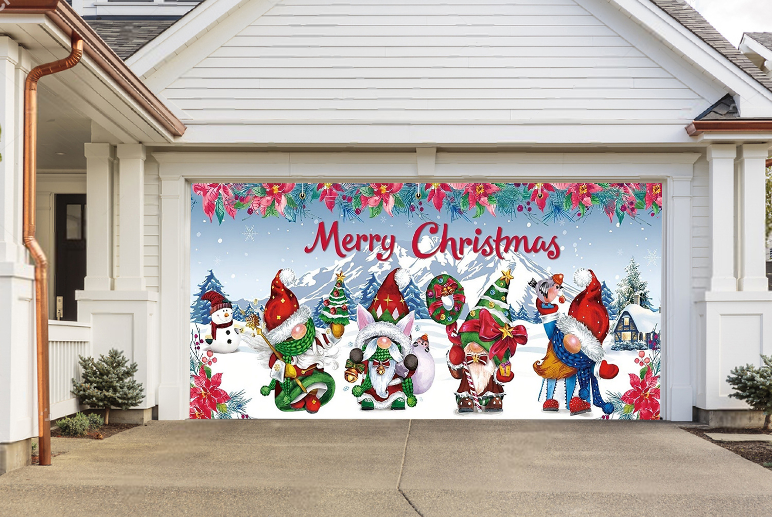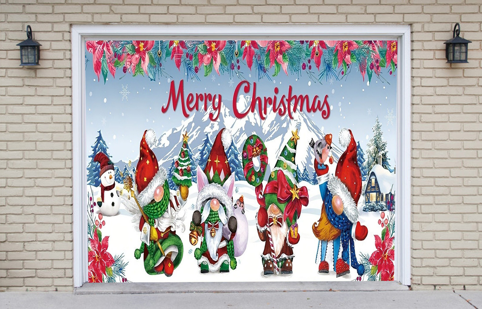 “Merry Christmas”Gnome Garage Door Mural snow scene Christmas-Outdoor Christmas Holiday Garage Door Banner Decor Christmas Scene Garage Door Mural