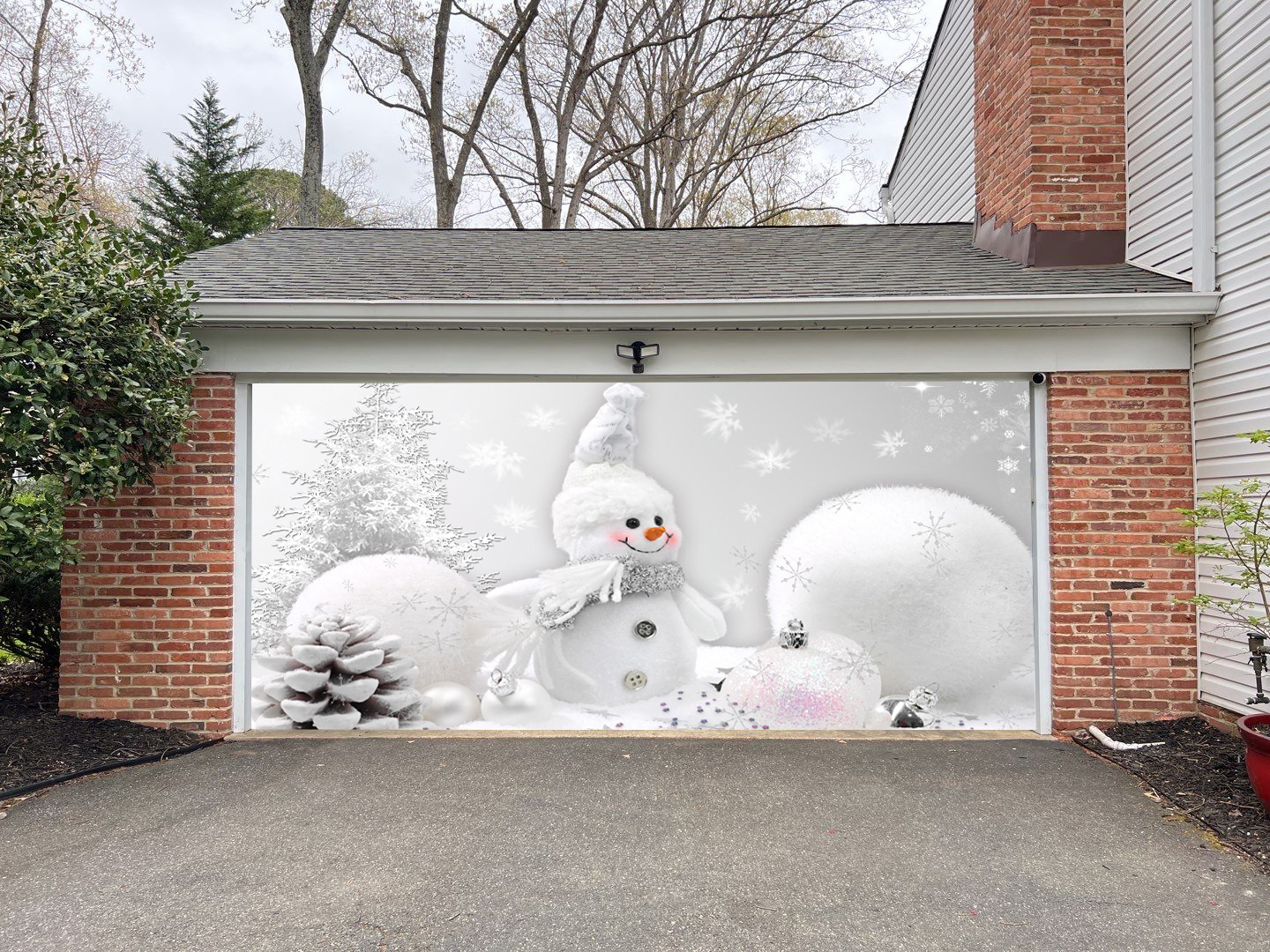 Looks like real ! Made out of top quality material and high resolution dye-sublimation printing. Festivemural selling unique garage door covers for the all year and seasons its made of high quality 100% polyester weather resistant and can be used for sectional panels and one piece tilt-up garage doors, if you’re garage door have dent , rusty or you just like to change the front of Your front house this is the great solution for your home.