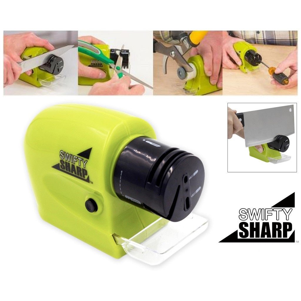 The Swift Sharp - Cordless Motorized Knife Sharpener offers precision power sharpening at a fraction of the price and it's cordless, making your sharpening as convenient as ever.