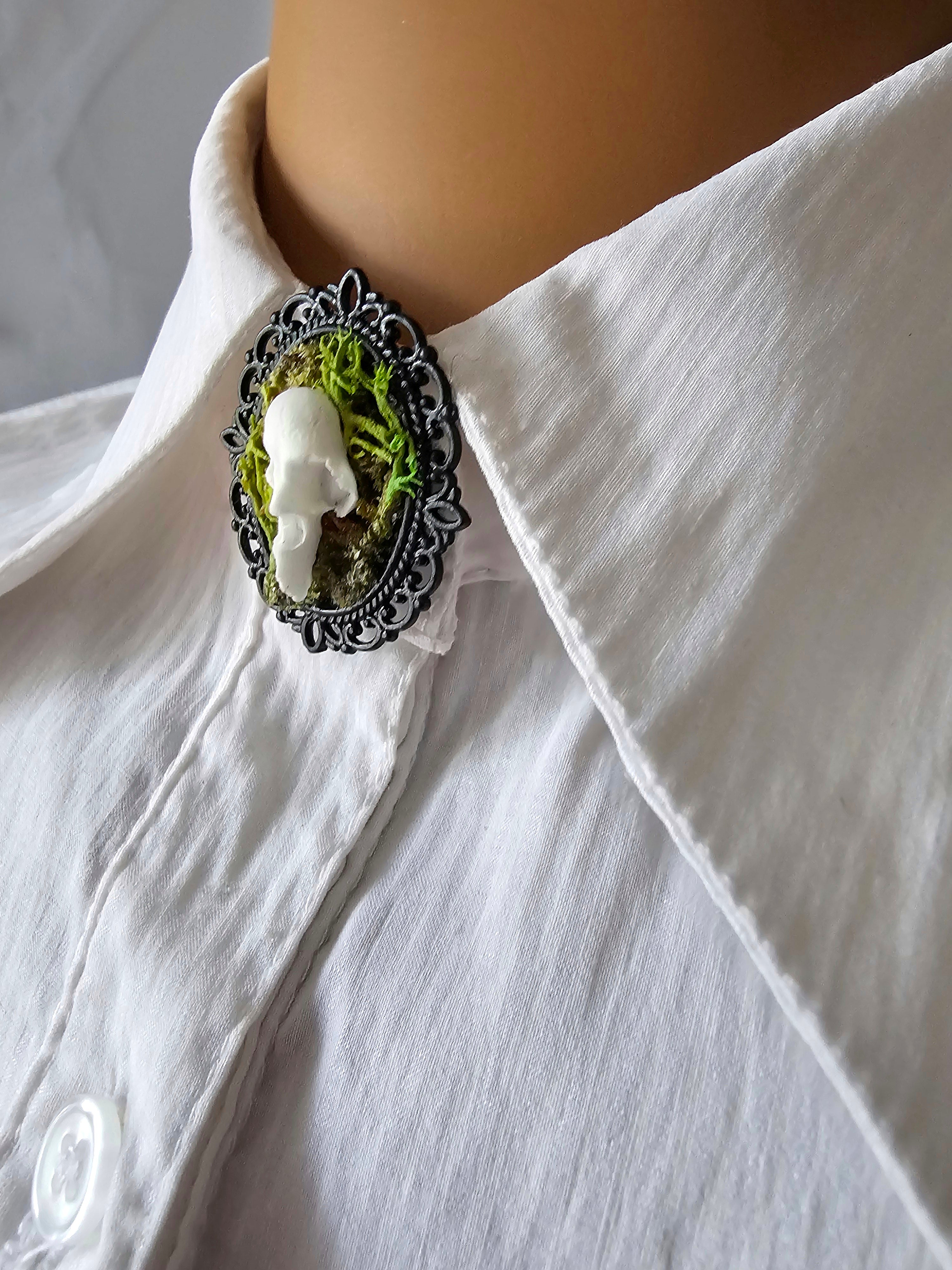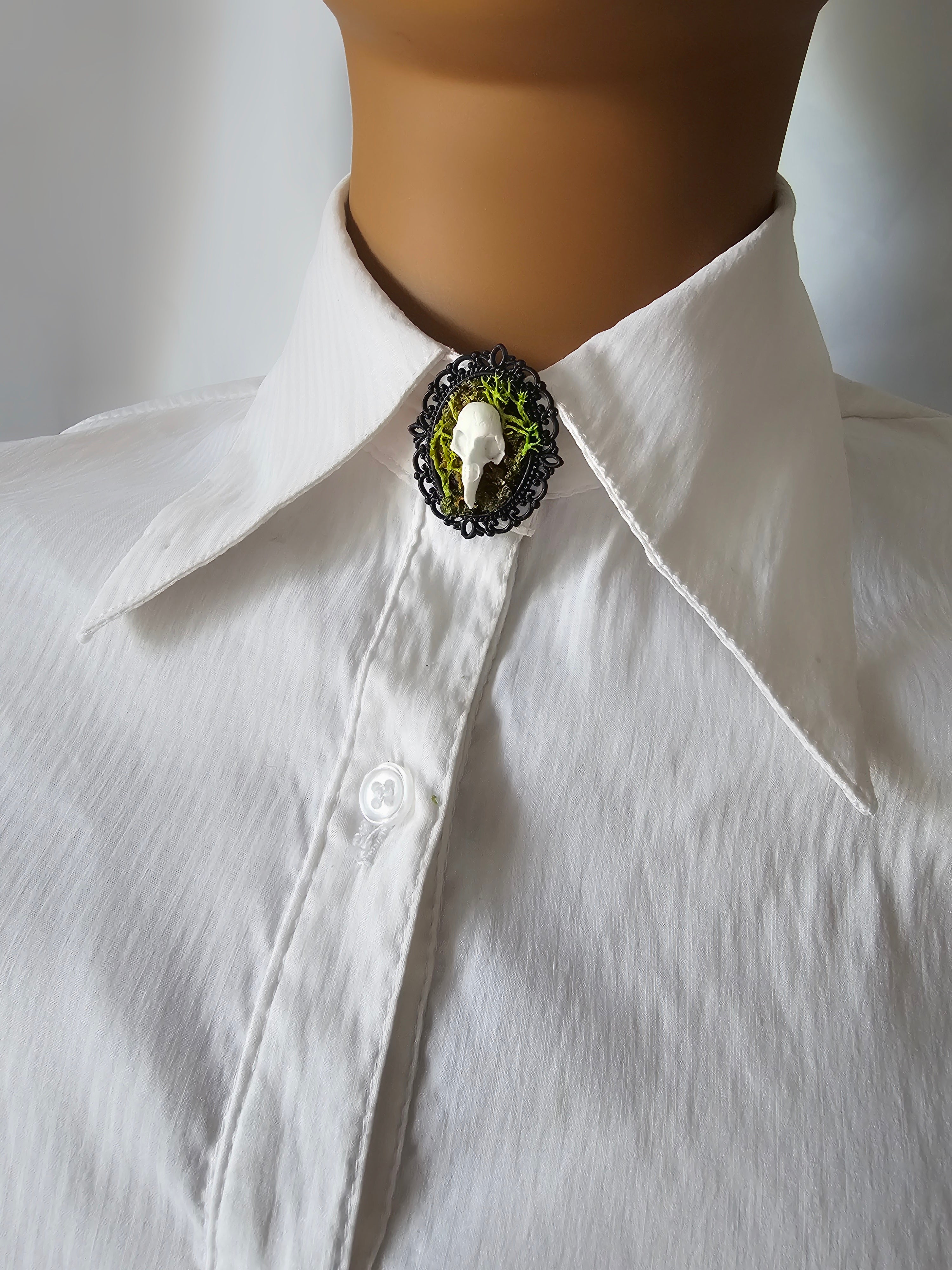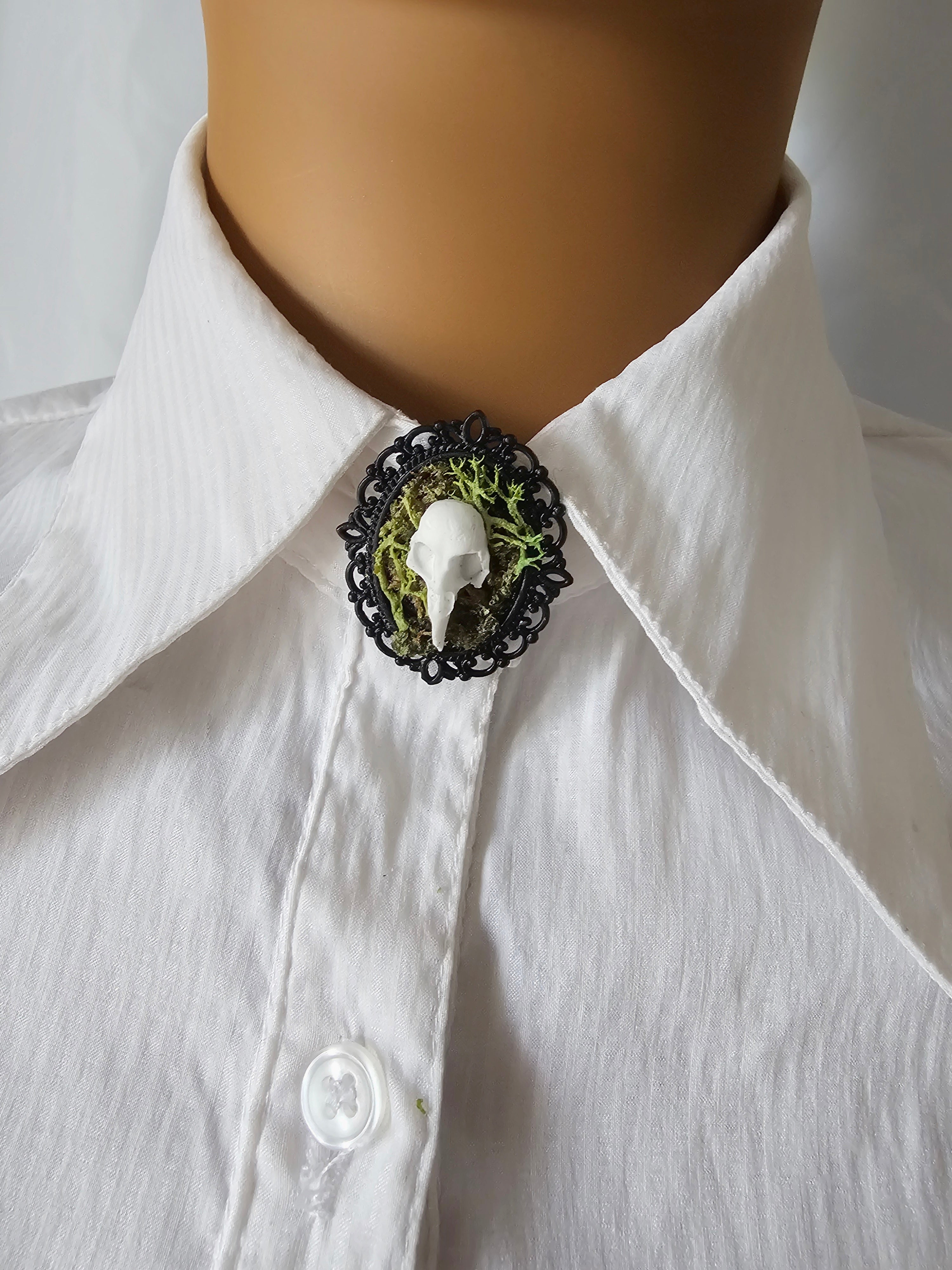 - base made of brass alloy, decorated with fake moss and puff clay bird skull