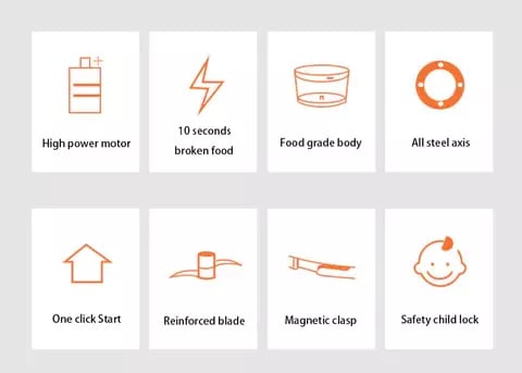 The chopper comes with a built-in 1200 mAh lithium-ion battery that powers the 40W motor. Once charged, it works for a whole month. Recharge it with any USB cable.