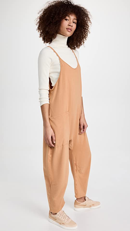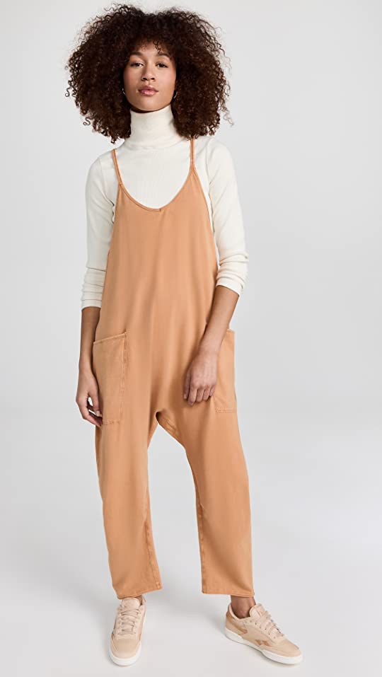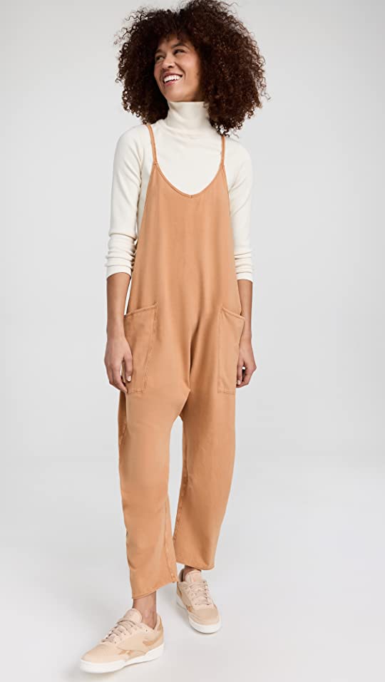 This soft and comfy onesie features a slouchy, relaxed-fitting design with a dropped crotch and convenient side pockets.