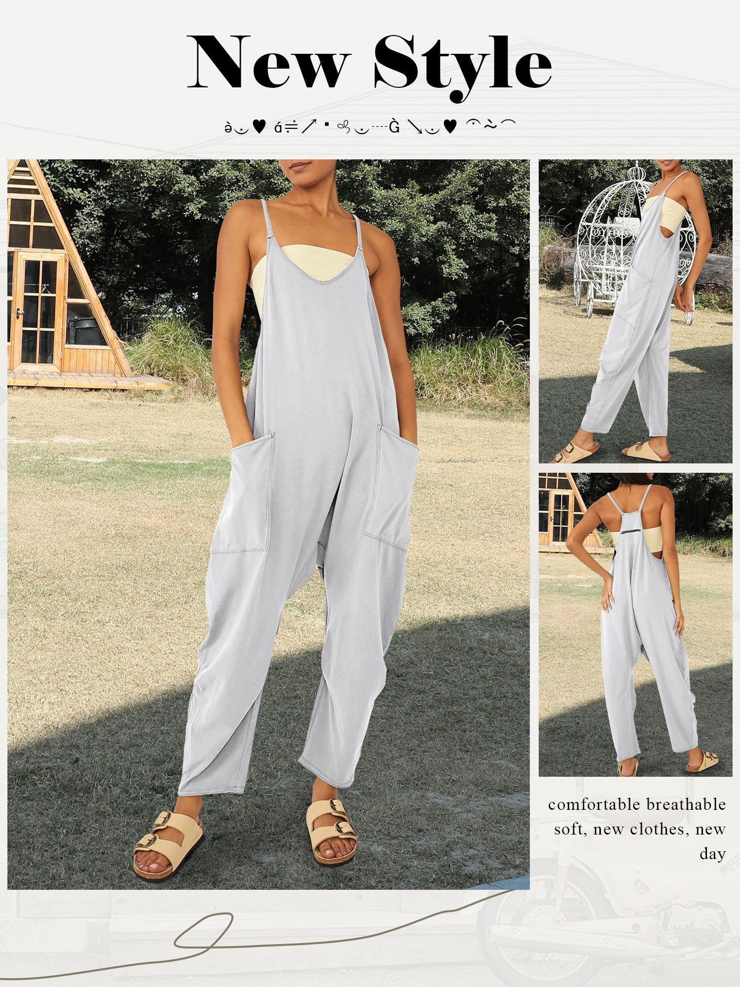 - Sleeveless Loose: one-piece sleeveless jumpsuits, stretchable long pants jumpsuit, loose fit, casual and baggy style.